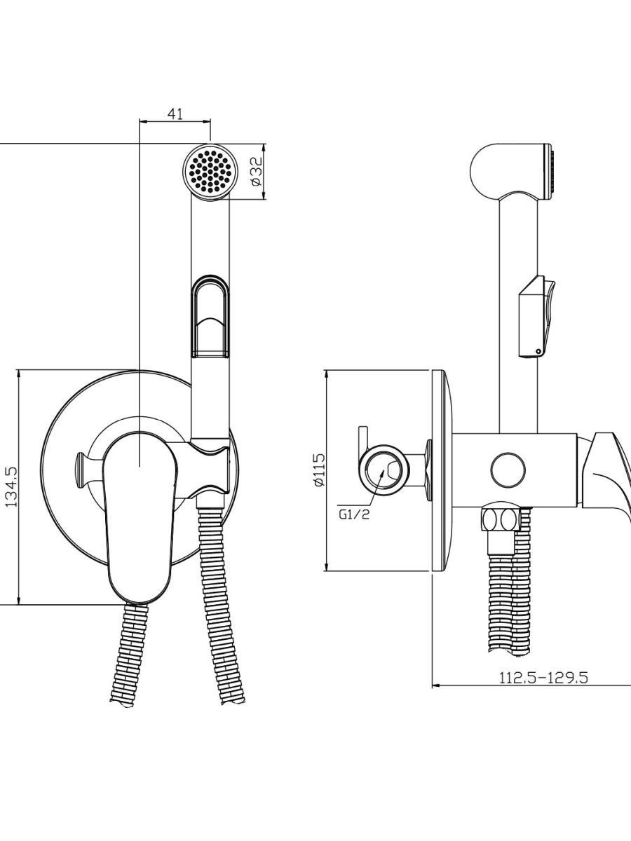Аксессуары в комплекте (шланг 1,2 м, лейка гигенического душа с нажимным механизмом с функцией легкой очистки)