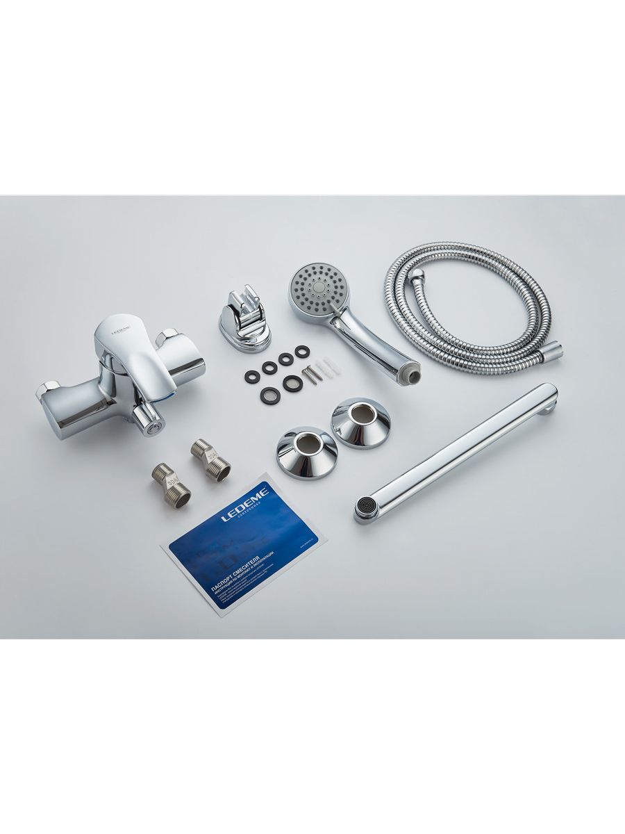 Смесители под торговой маркой LEDEME изготовлены из высококачественной латуни с хромированным покрытием и соответствуют общеевропейским и международным стандартам качества. В ассортименте представлены смесители различного направления дизайна и назначения, с двумя маховиками или однорычажные, хромированные, матовые, гранитные, тропический душ и другие.Смеситель LEDEME L2264 из серии H64 предназначен для использования в ванной комнате. Смешивание горячей и холодной воды происходит с помощью керамического картриджа диаметром 40 мм. Смеситель однорычажный, с плоским изливом длиной 300 мм, с рычажковым переключателем на душ и дивертором в корпусе смесителя. В комплекте душевой шланг длиной 1,5 метра с лейкой, отражатели, эксцентрики, крепление для лейки к стене. Гарантия на комплектующие 1 год.