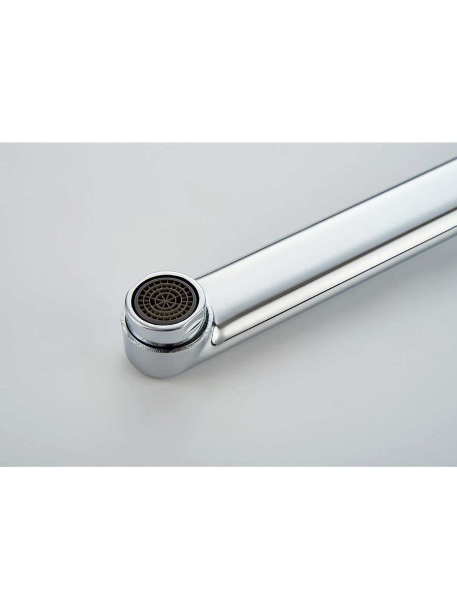 Конструкция модели основана на использовании керамических смешивающих кранбукс, имеющих повышенный ресурс и пропускную способность. Аэратор максимально увеличивает насыщенности воды кислородом, аэрация струи происходит за счет увеличения площади потока. Эргономичные ручки управления смесителя цвета «хром» имеет форму, удобную для захвата ладонью и значительные размеры, что позволяет уменьшить усилия, необходимые для изменения температуры и напора воды.