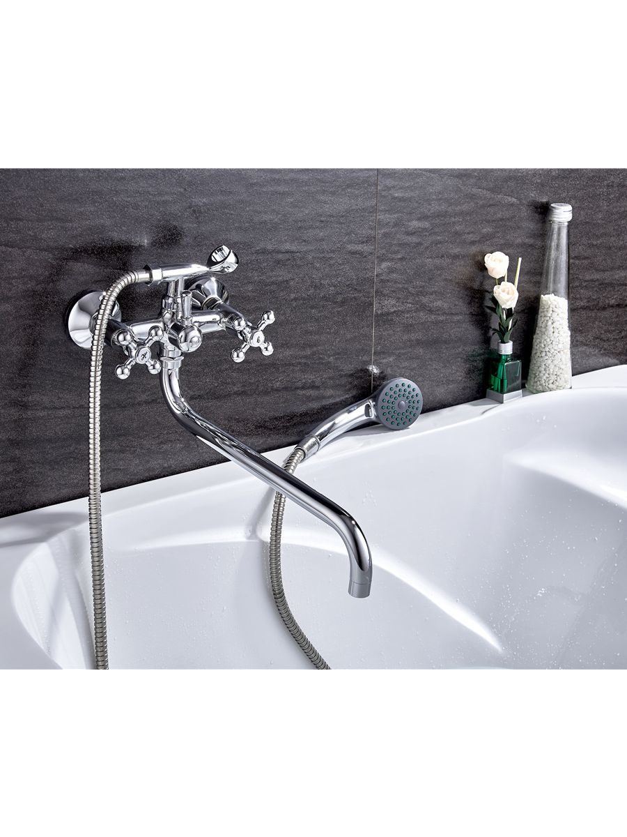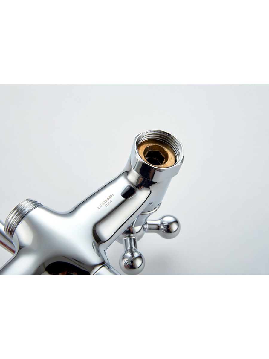 Смесители под торговой маркой LEDEME изготовлены из высококачественной латуни с хромированным покрытием и соответствуют общеевропейским и международным стандартам качества. В ассортименте представлены смесители различного направления дизайна и назначения, с двумя маховиками или однорычажные, хромированные, матовые, гранитные, тропический душ и другие.Смеситель LEDEME L2619 из серии H19 предназначен для использования в ванной комнате, имеет два крестообразных металлических маховика холодной и горячей воды с керамическими кран-буксами, круглый излив длиной 300 мм, а также душевой шланг длиной 1,5 метра с лейкой, переключатель на душ рычажковый. В комплекте отражатели, эксцентрики. Гарантия на комплектующие 1 год.