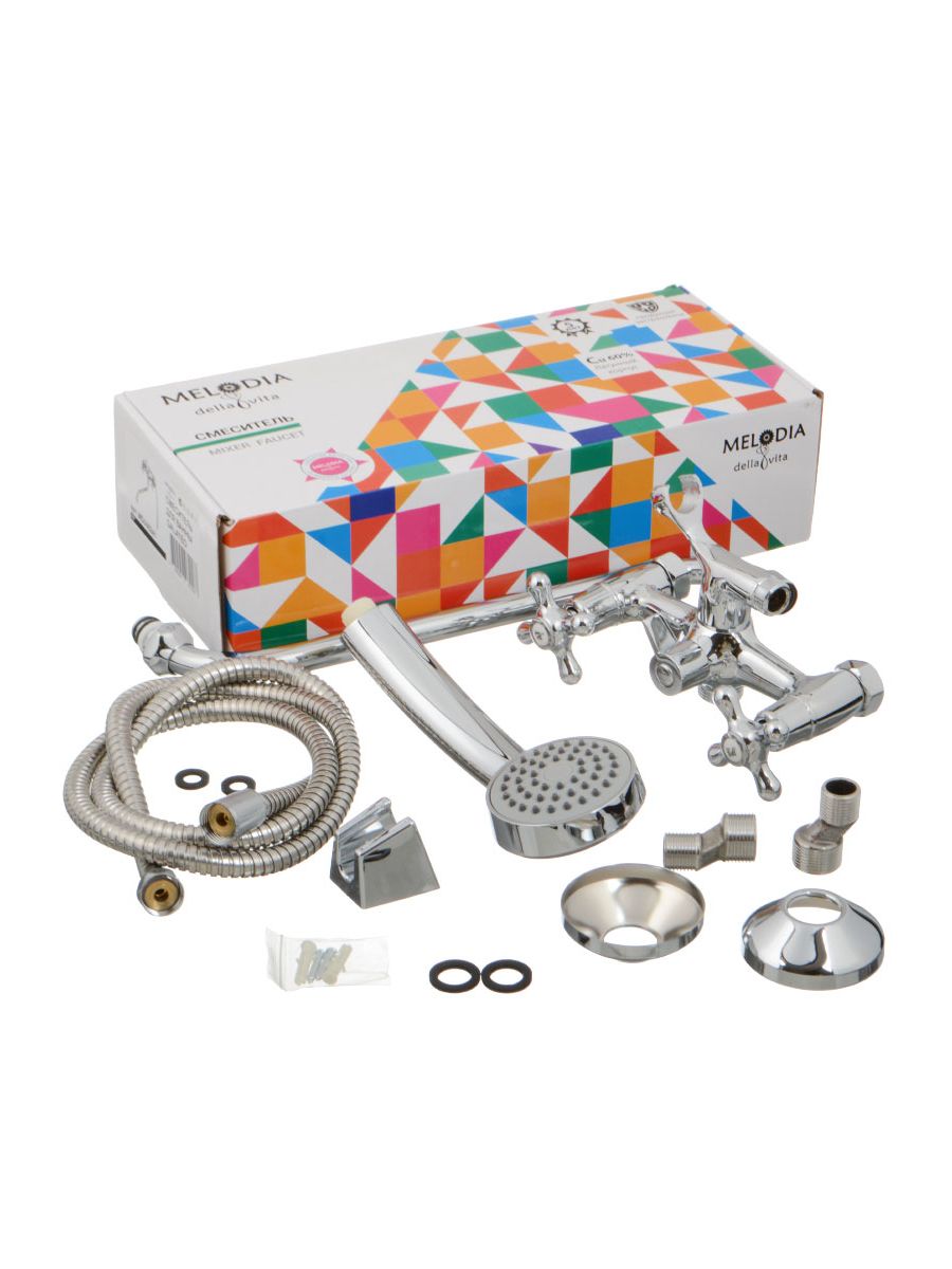 Смеситель для ванны MELODIA Galateo MDV40241 изготовлен из высококачественной хромированной латуни, обладает повышенной прочностью, коррозионной стойкостью, регулировка подачи и температуры воды происходит с помощью двух маховиков с керамическими кран-буксам. Переключение режимов излив/лейка с помощью механизма с керамическими пластинами, в комплекте душевая лейка с креплением и гибкий шланг длиной 1,5 метра.Комплектация поставки: смеситель, отражатели, эксцентрики, шланг, лейка, кронштейн для лейки, паспорт.