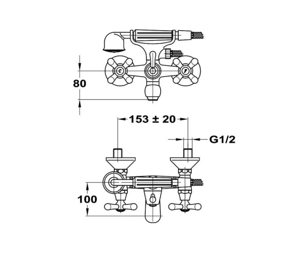 Смеситель Mofem производится на заводе в Венгрии, который входит в международный концерн TEKA. Современное оборудование завода, жесткое соблюдение производственного цикла и постоянный контроль качества всех материалов и работ позволяет потребителю купить качественный, современный и недорогой смеситель для дома. Ассортимент торговой марки Mofem представлен однорычажными смесителями и смесителями с двумя маховиками.Смеситель для ванны Mofem Treff 202 представляет собой конструкцию настенного монтажа с двумя маховиками холодной и горячей воды с классическими резиновыми кран-буксами, изготовлен из высококачественной хромированной латуни. Смеситель с поворотным коротким изливом длиной 100 мм применяется для ванны и душа, переключатель излив/душ золотниковый. В комплекте лейка с душевым шлангом длиной 1,5 м, эксцентрики, декоративные отражатели, аэратор М24*1.