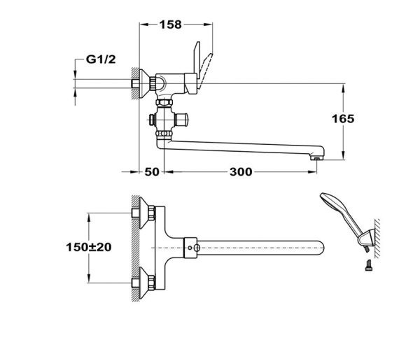 Смеситель Mofem производится на заводе в Венгрии, который входит в международный концерн TEKA. Современное оборудование завода, жесткое соблюдение производственного цикла и постоянный контроль качества всех материалов и работ позволяет потребителю купить качественный, современный и недорогой смеситель для дома. Ассортимент торговой марки Mofem представлен однорычажными смесителями и смесителями с двумя маховиками.Смеситель для ванны Mofem Rumba 603 RUMBA представляет собой конструкцию с одной ручкой для настенного монтажа, изготовлен из высококачественной хромированной латуни, смешивание холодной и горячей воды с помощью керамического картриджа диаметром 35 мм, ручка металлическая. Смеситель с поворотным изливом длиной 300 мм применяется для ванны и душа, а также может использоваться в умывальниках, переключатель излив/душ кнопочный. В комплекте лейка с держателем на стену, душевой шланг 1,5 м, эксцентрики, декоративные отражатели, аэратор М24*1.