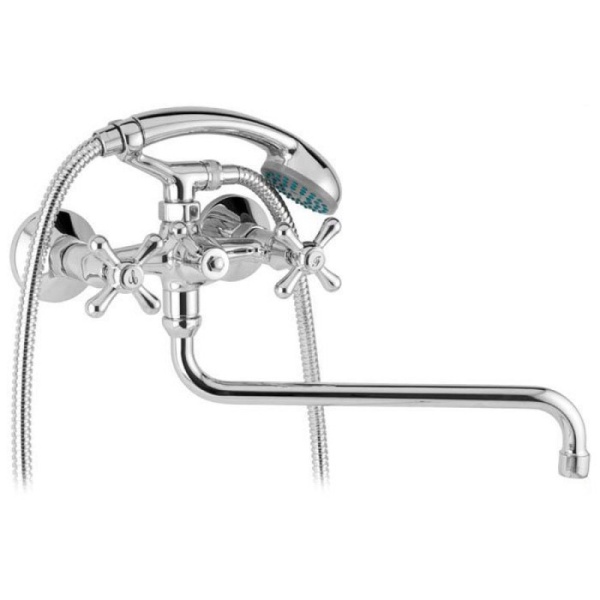 Смеситель Mofem производится на заводе в Венгрии, который входит в международный концерн TEKA. Современное оборудование завода, жесткое соблюдение производственного цикла и постоянный контроль качества всех материалов и работ позволяет потребителю купить качественный, современный и недорогой смеситель для дома. Ассортимент торговой марки Mofem представлен однорычажными смесителями и смесителями с двумя маховиками.Смеситель для ванны Mofem Treff 603 TREFF представляет собой конструкцию настенного монтажа с двумя маховиками холодной и горячей воды с классическими резиновыми кран-буксами, изготовлен из высококачественной хромированной латуни. Смеситель с поворотным круглым изливом длиной 300 мм применяется для ванны и душа, а также умывальника, переключатель излив/душ золотниковый. В комплекте лейка с душевым шлангом длиной 1,5 м, эксцентрики, декоративные отражатели, аэратор М22*1.