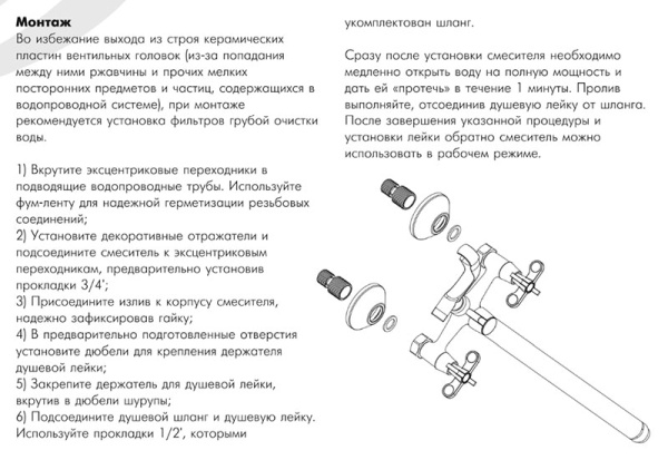 В комплекте смесителя для ванны и душа ROSSINKA RS42-80 :