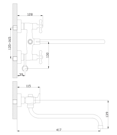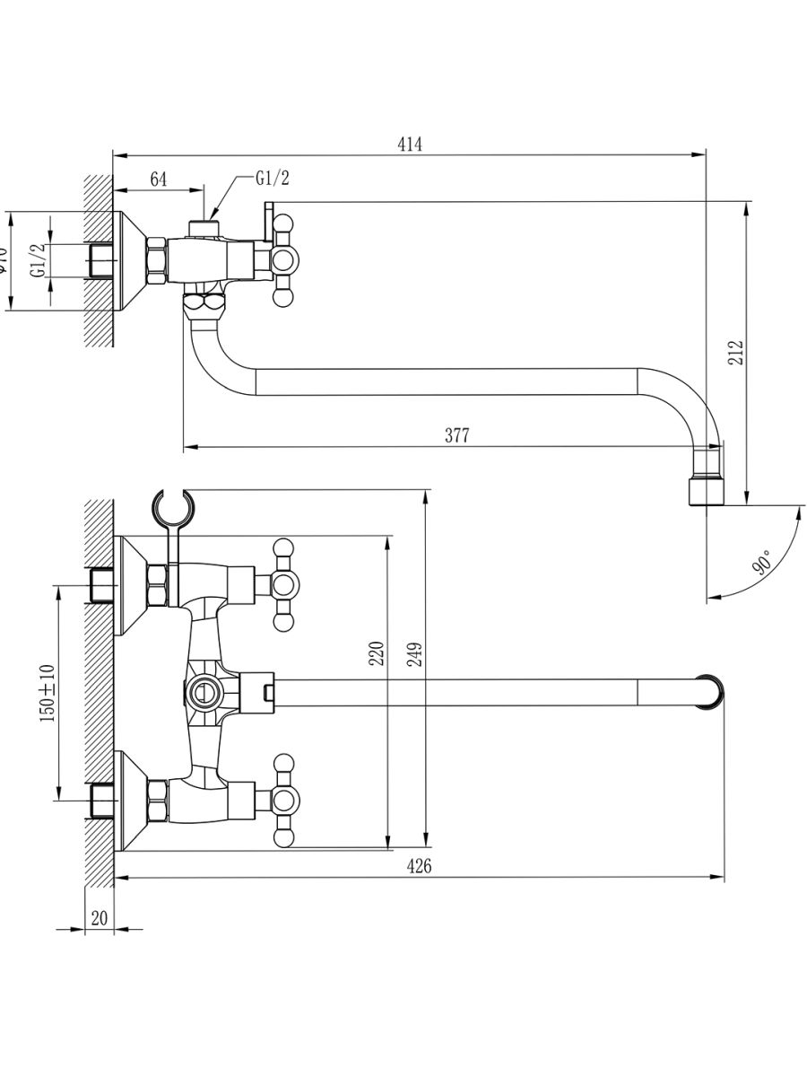 Смеситель ROSSINKA G02-84 предназначен для использования в ванной комнате. Смеситель устанавливается на стену. Управлять процессом включения и смешивания воды можно с помощью двух ручек с керамическими кран-буксами и круглого поворотного излива 350 мм. Переключение воды между лейкой и изливом происходит с помощью керамического дивертора.