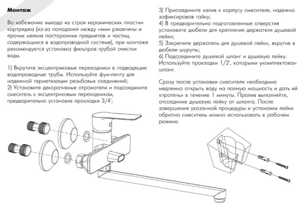 В комплекте смесителя для ванны и душа ROSSINKA RS28-33 :