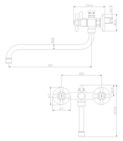 Смеситель ROSSINKA Y35-32 предназначен для использования в ванной комнате. Смеситель устанавливается на стену. Управлять процессом включения и смешивания воды можно с помощью двух ручек с керамическими кран-буксами и длинного излива 310 мм. Переключение воды между лейкой и изливом происходит с помощью керамического дивертора.
