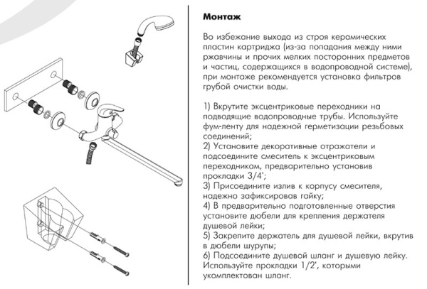 В комплекте смесителя для ванны и душа ROSSINKA Y40-32 :