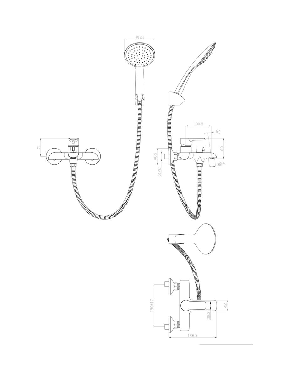 Шланг для душа 1,5 м - 1 шт.;