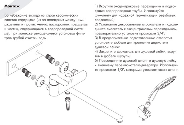 В комплекте смесителя для ванны и душа ROSSINKA W35-33 :