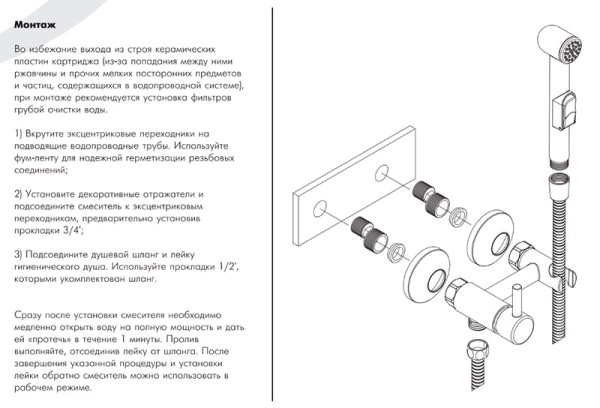 В комплекте смесителя для биде ROSSINKA X25-52 :