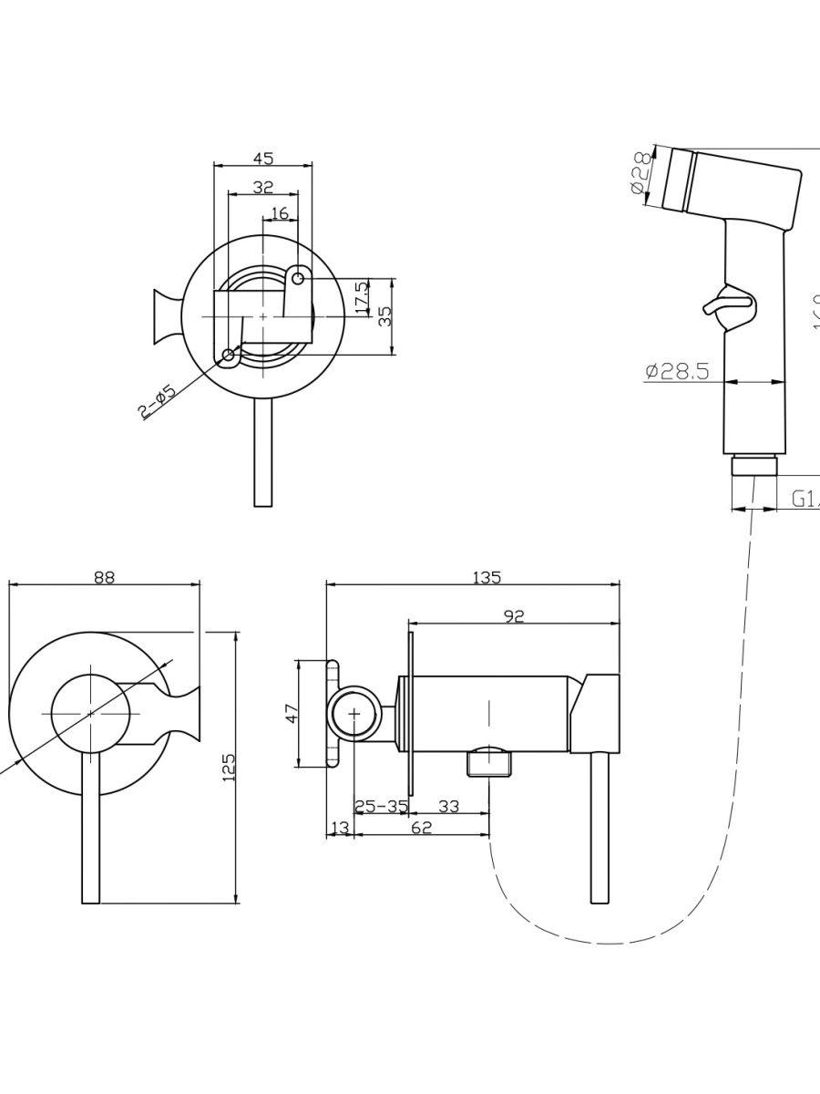 Смеситель скрытого монтажа с гигиеническим душем и металлическим шлангом в комплекте. Цвет: Хром