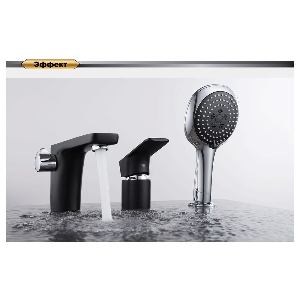 Строгие черты в изысканном черном цвете подчеркивают индивидуальность каждой ванной комнаты. Ручка и излив правильно подобраны по размеру, для удобной повседневной эксплуатации на долгие годы.