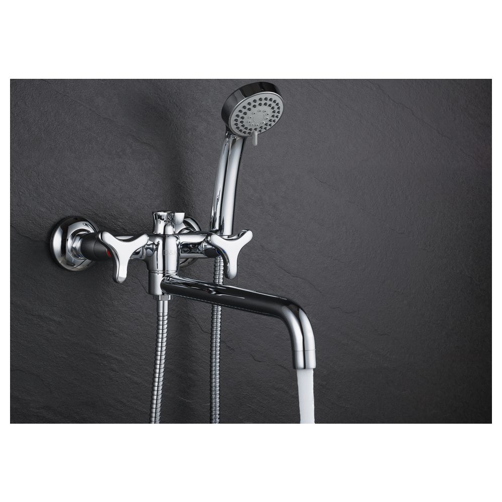 Блестящий внешний вид двухручкового смесителя с обновленными ручками привлекает своим внешним видом, послужит прекрасным дополнением классической ванной комнаты.