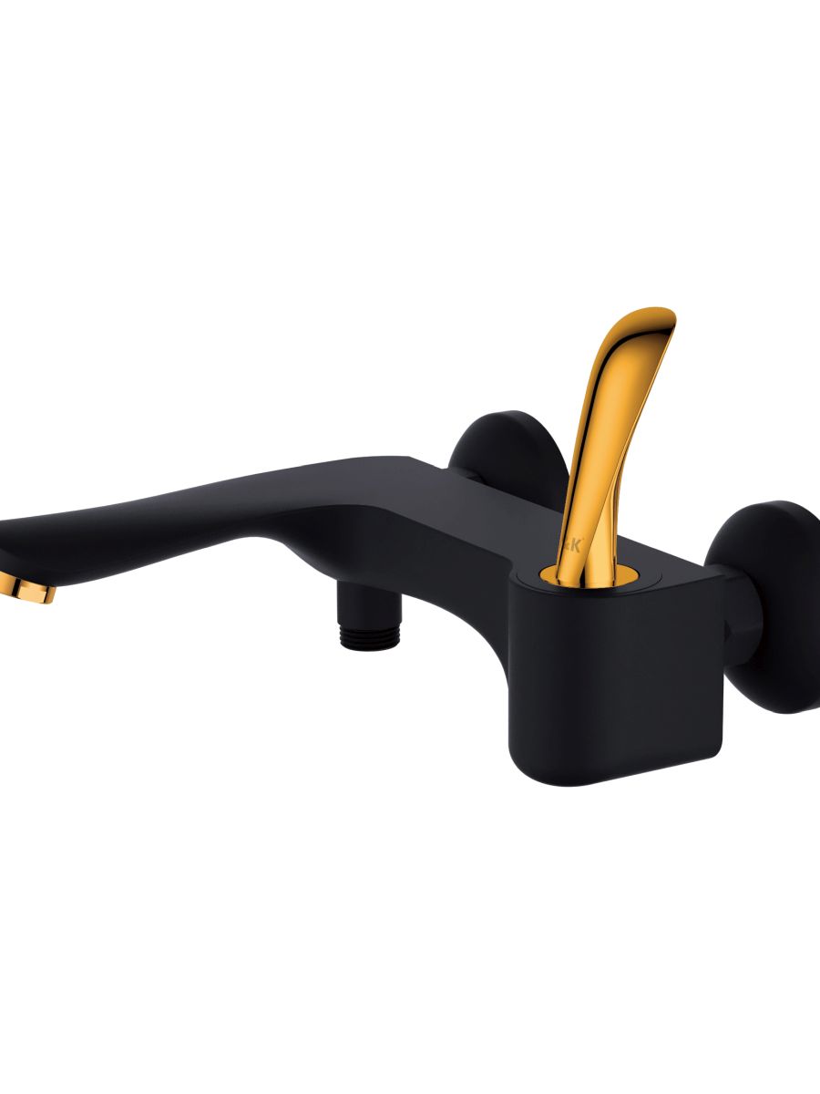 Стильный внешний вид в черном и золотом цветах украсит современную ванную комнату. Вытяжной дивертор для безопасности, от случайного попадания воды и возникновению ожогов.