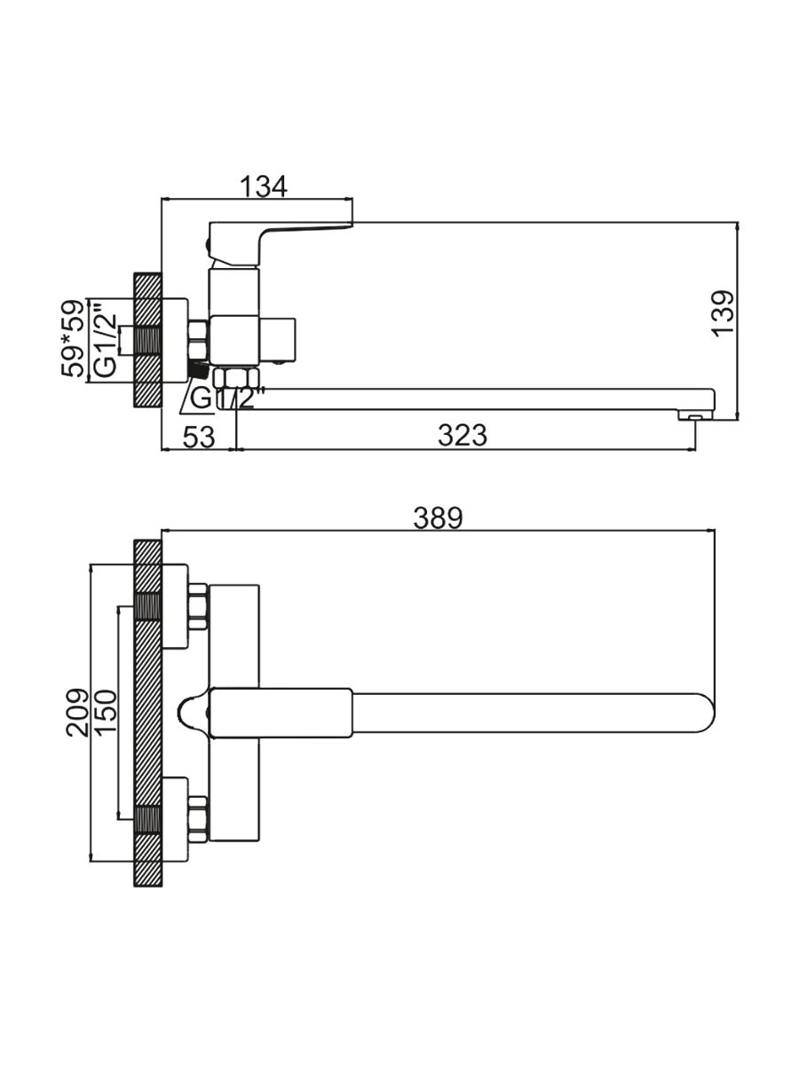 Смеситель ванна LEDEME длинный излив 350мм белый L2273W