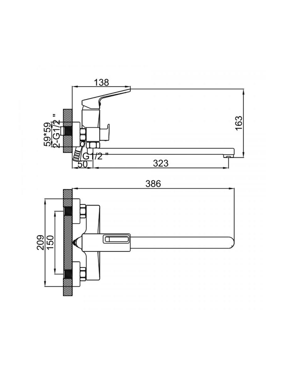 Смеситель ванна LEDEME длинный излив 350мм черный L2292B