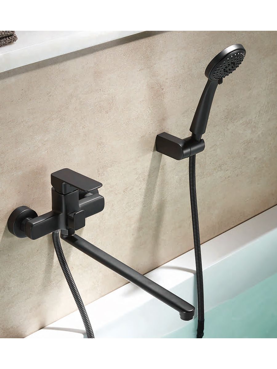 Смеситель ванна LEDEME длинный излив черный L2280B
