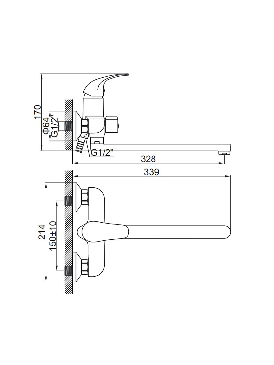 Смеситель ванна LEDEME картридж д.35мм длинный излив L2231