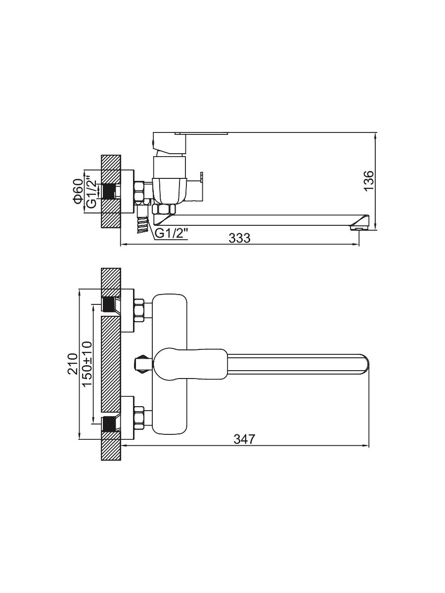 Смеситель ванна LEDEME с длинным поворотным изливом L72218