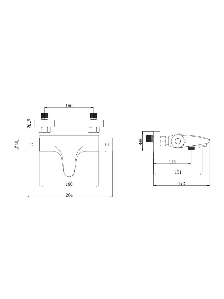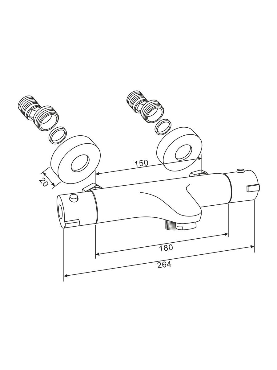Смеситель ванна MELODIA Rock термостатический без аксессуаров хром MDV32007