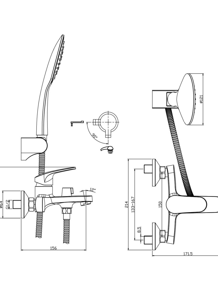 Аксессуары в комплекте (шланг 1,5 м, настенное поворотное крепление для лейки, 3-функциональная лейка ø121*259 мм с функцией легкой очистки)