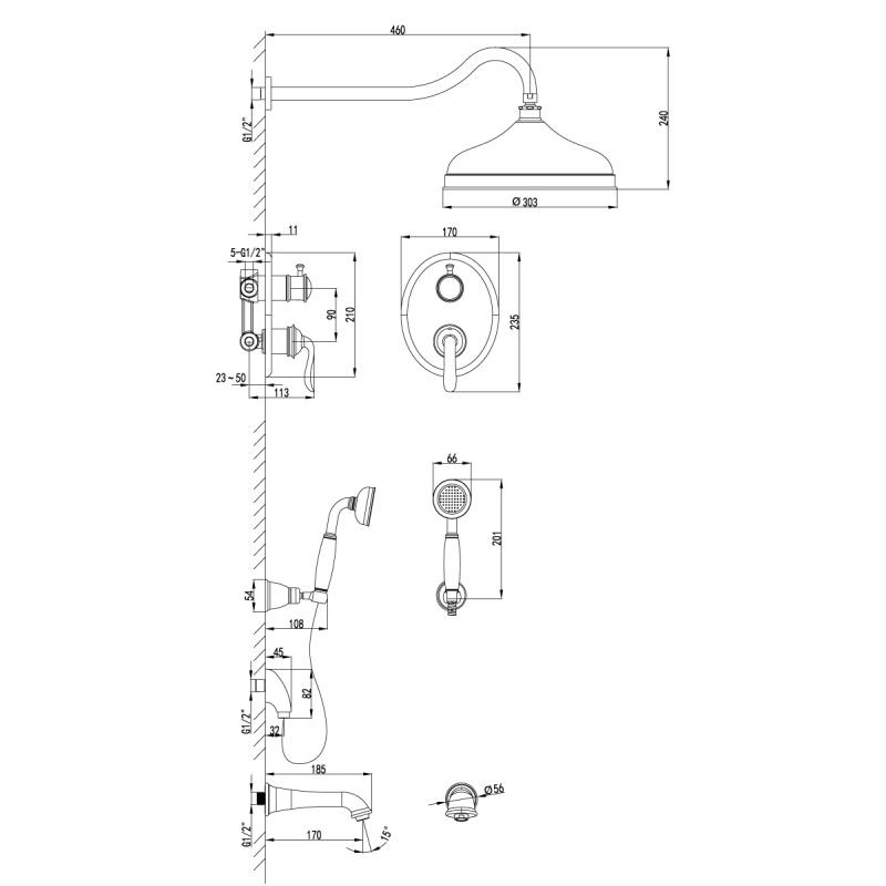 - Верхняя поворотная душевая лейка «Тропический дождь» Ø303 мм
