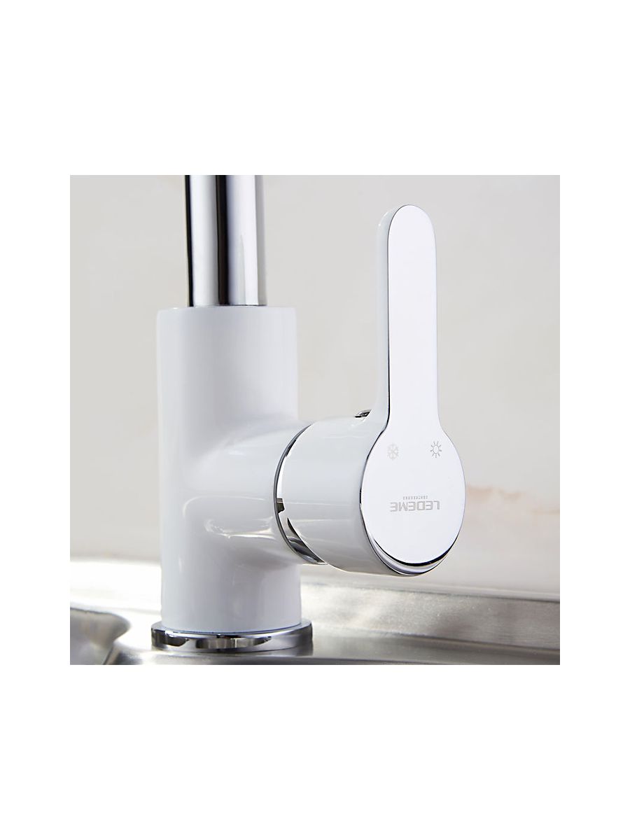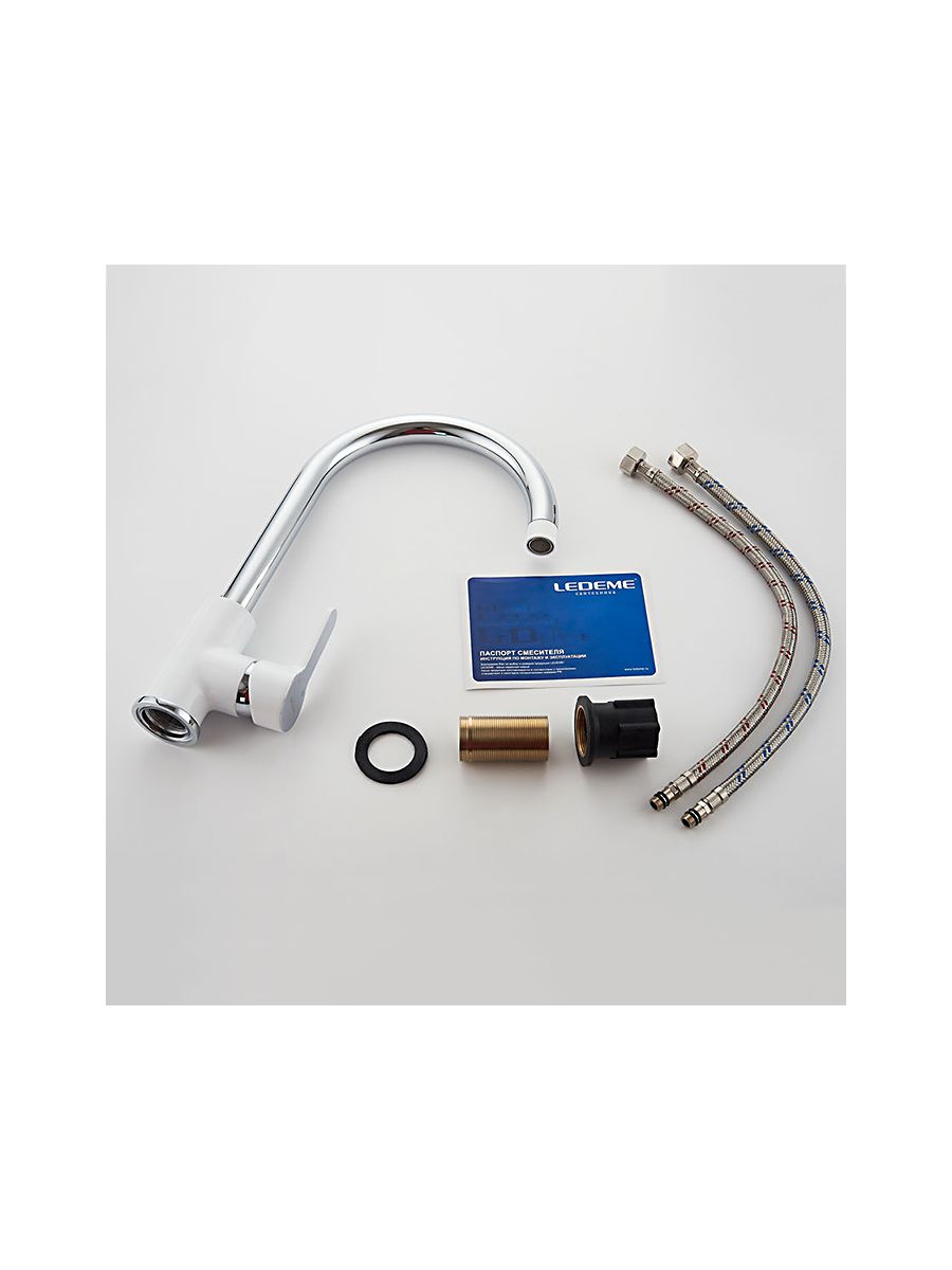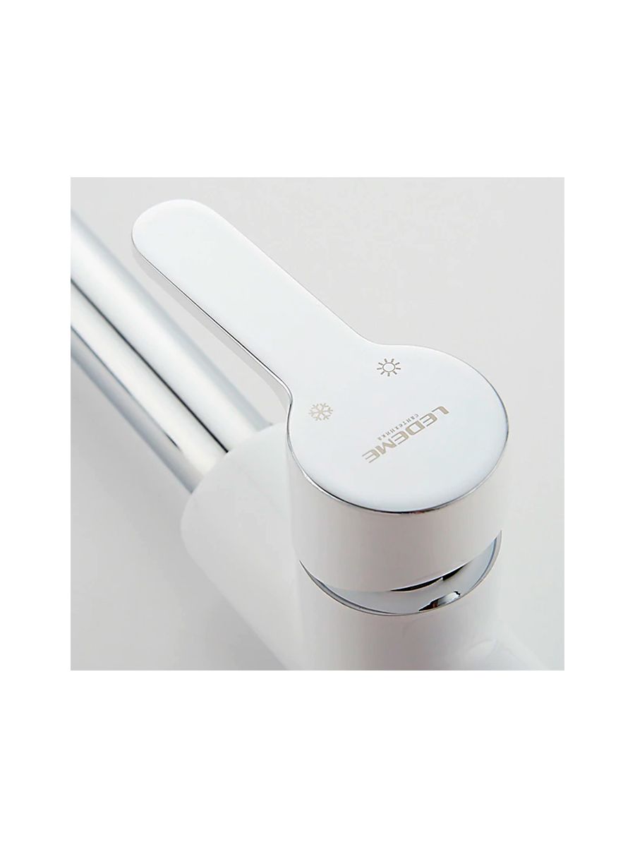 Смеситель кухня LEDEME картридж д.35мм,с гайкой, белый, L4003W смесители производителя Ledeme относятся к эконом-классу и отличаются демократической ценой, достойным качеством и приятным дизайном. В комплект входят аксессуары и гибкая подводка, запорный клапан состоит из картриджа 35 мм с керамическими пластинами, что значительно увеличивает их срок службы. Смеситель изготовлен из высококачественной латуни с белым хромированным покрытием, которое делает смеситель Ledeme устойчивым к механическим повреждениям и загрязнениям, что позволяет надолго сохранить превосходный внешний вид изделия.
