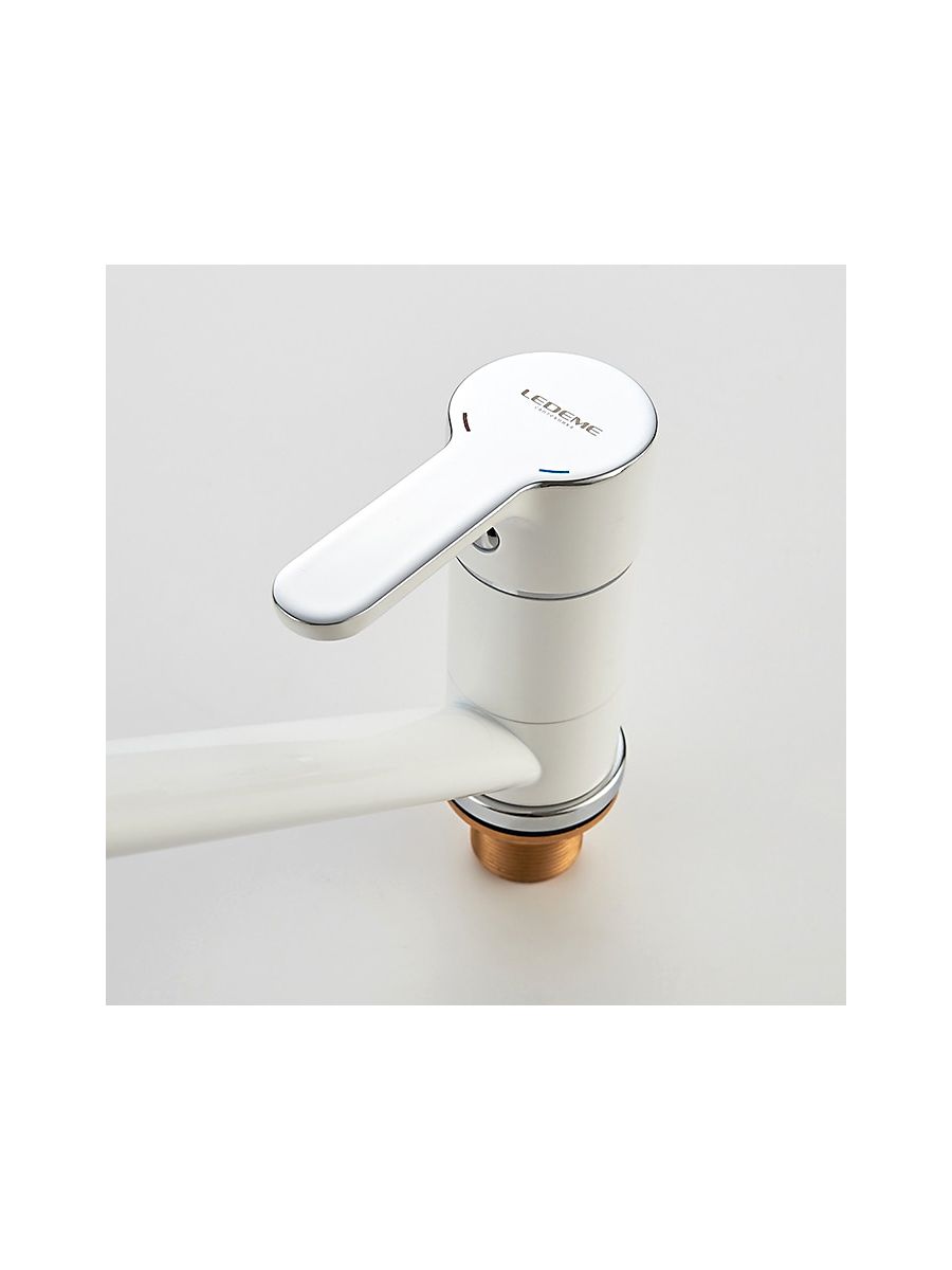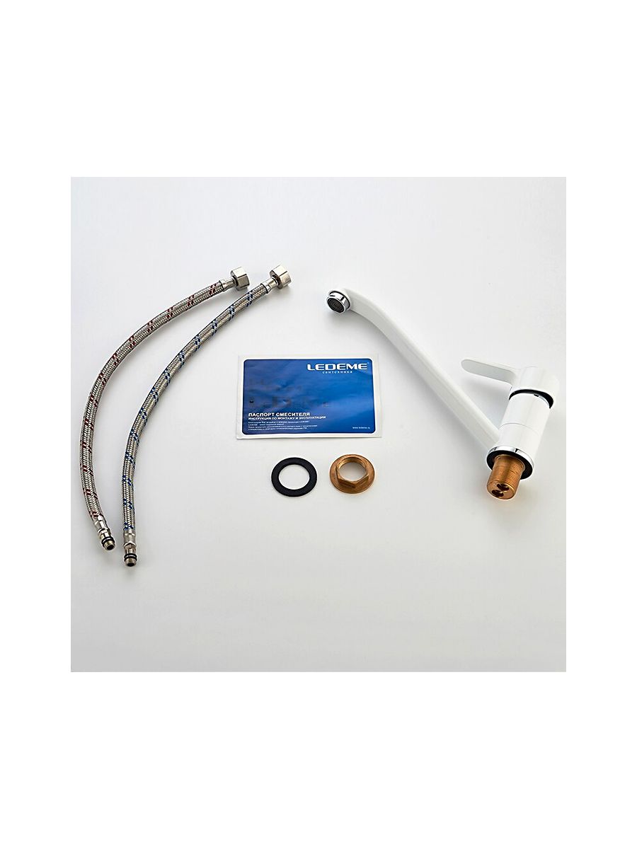 Смеситель кухня LEDEME картридж д.35мм,с гайкой, белый, L4903W смесители производителя Ledeme относятся к эконом-классу и отличаются демократической ценой, достойным качеством и приятным дизайном. В комплект входят аксессуары и гибкая подводка, запорный клапан состоит из картриджа 35 мм с керамическими пластинами, что значительно увеличивает их срок службы. Смеситель изготовлен из высококачественной латуни с белым хромированным покрытием, которое делает смеситель Ledeme устойчивым к механическим повреждениям и загрязнениям, что позволяет надолго сохранить превосходный внешний вид изделия.