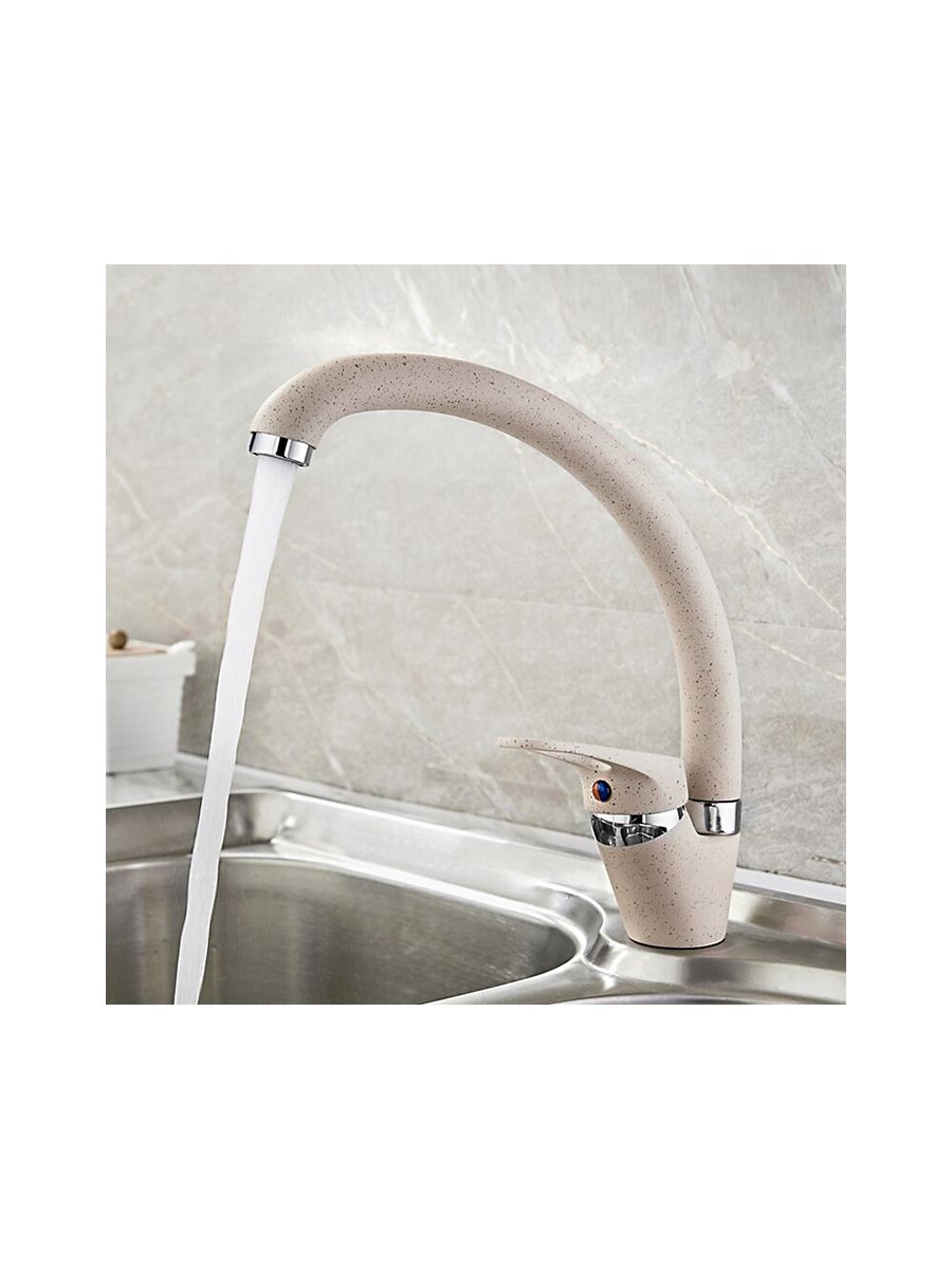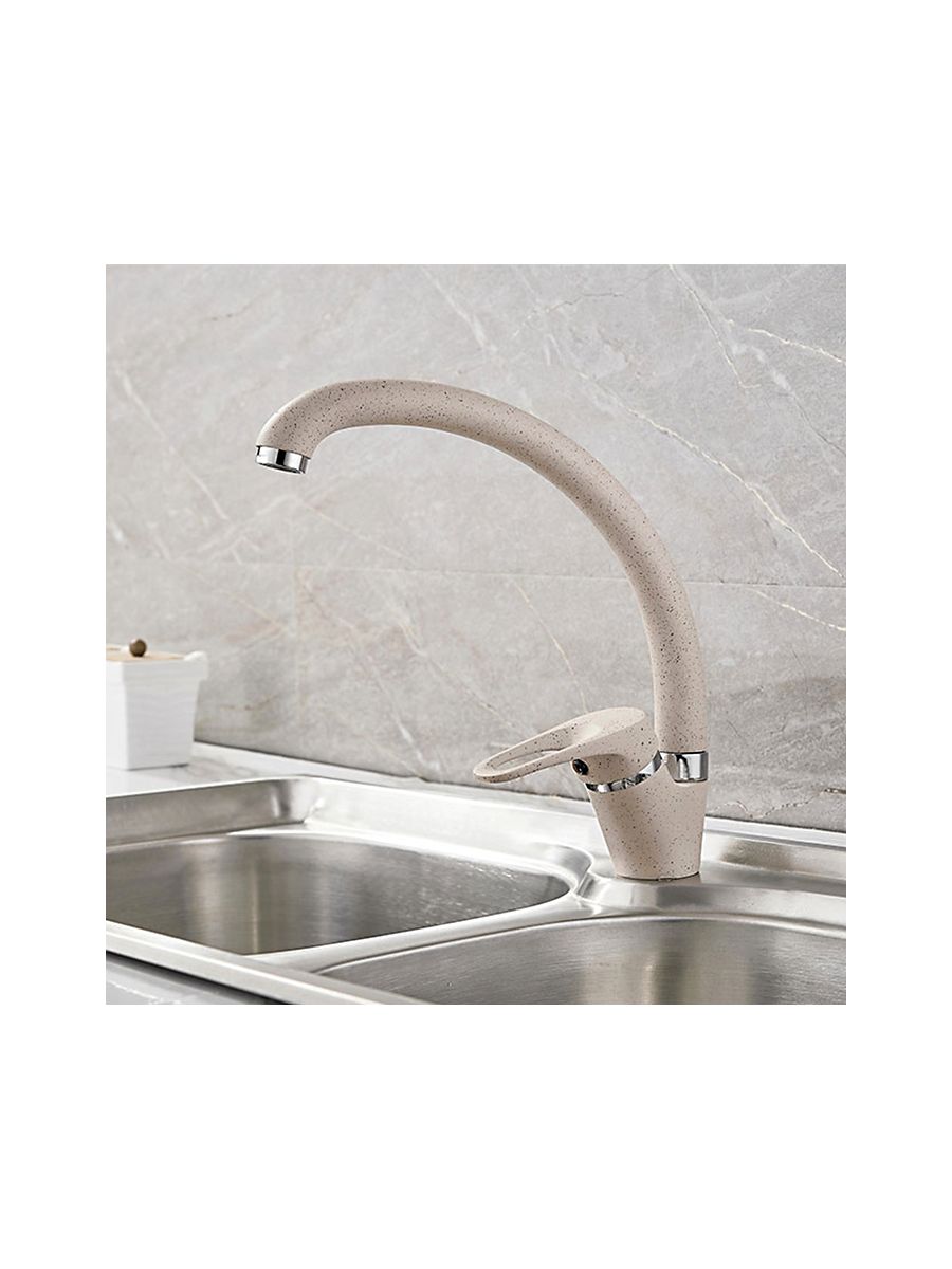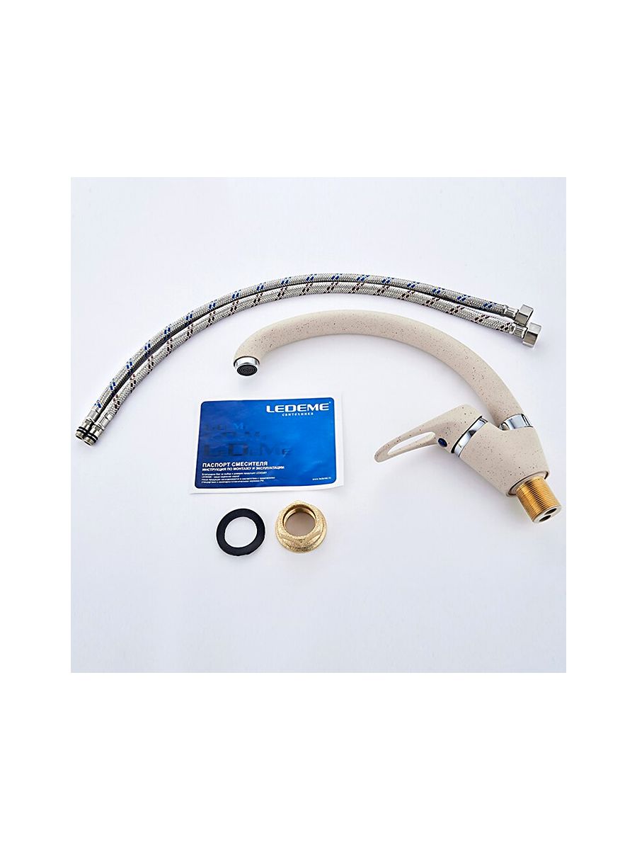 Смесители под торговой маркой LEDEME изготовлены из высококачественной латуни с хромированным покрытием и соответствуют общеевропейским и международным стандартам качества. В ассортименте представлены смесители различного направления дизайна и назначения, с двумя маховиками или однорычажные, хромированные, матовые, гранитные, тропический душ и другие.Смеситель LEDEME L5913K предназначен для использования на кухне. Смешивание горячей и холодной воды происходит с помощью керамического картриджа диаметром 40 мм. Смеситель однорычажный, с поворотным изливом высотой 200 мм, материал смесителя латунь с нанесением покрытия имитирующее гранит бежевого цвета, крепление на кухонной мойке с помощью обжимной гайки. В комплекте прилагается подводка к смесителю. Гарантия на комплектующие 1 год.