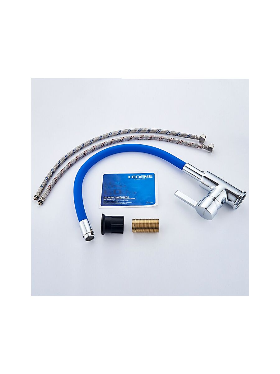 Смеситель для кухни Ledeme гибкий излив синий L4898-6