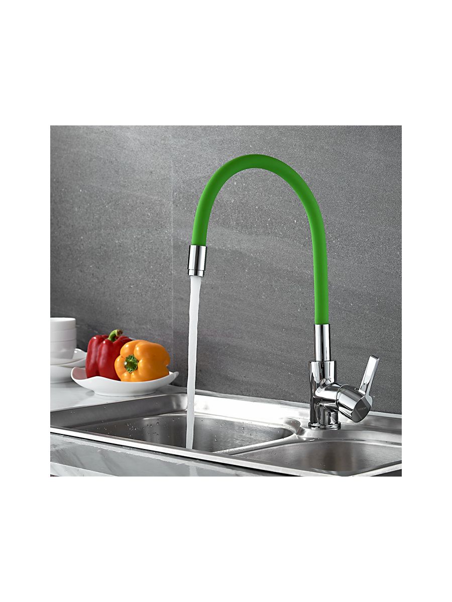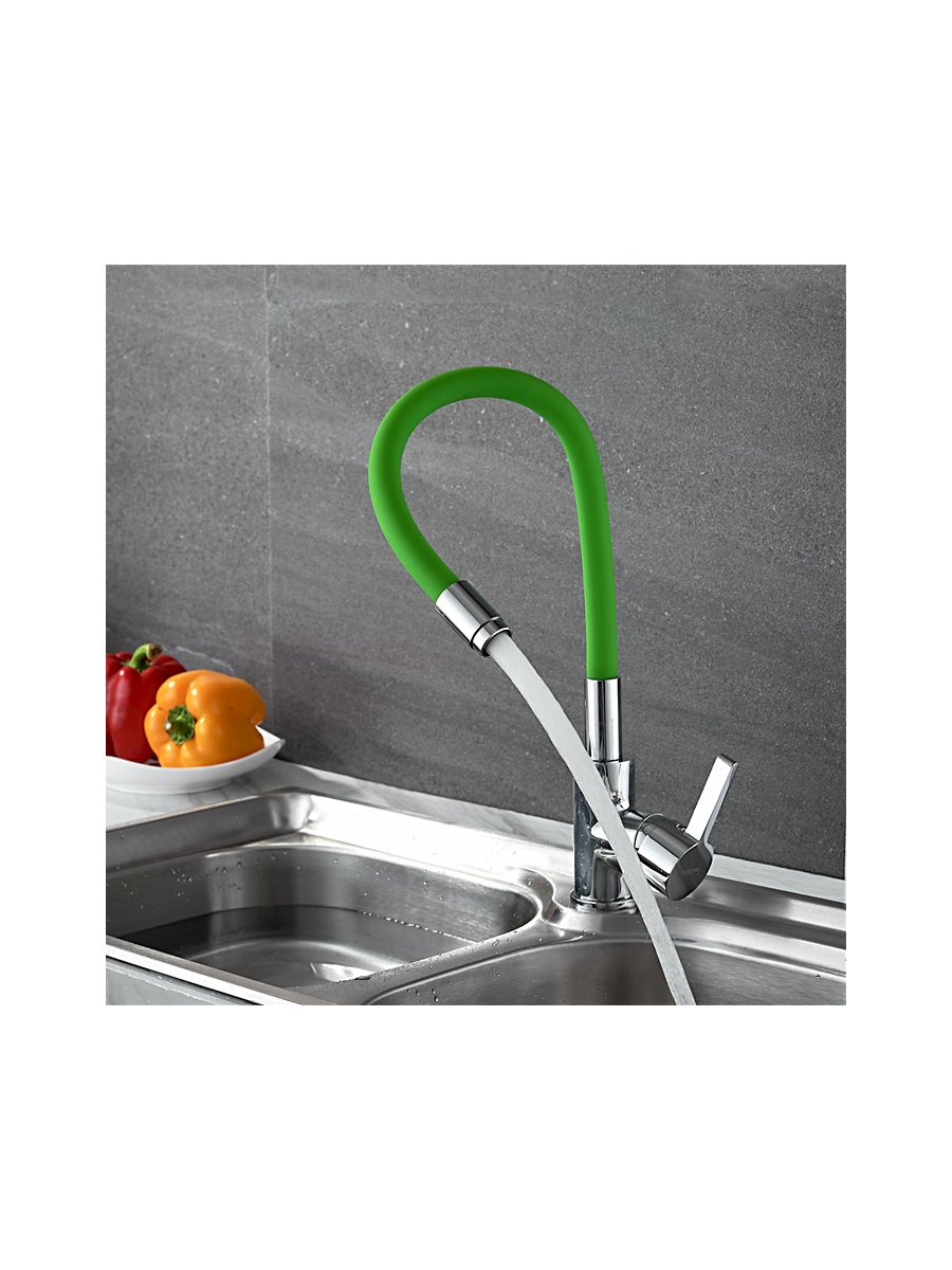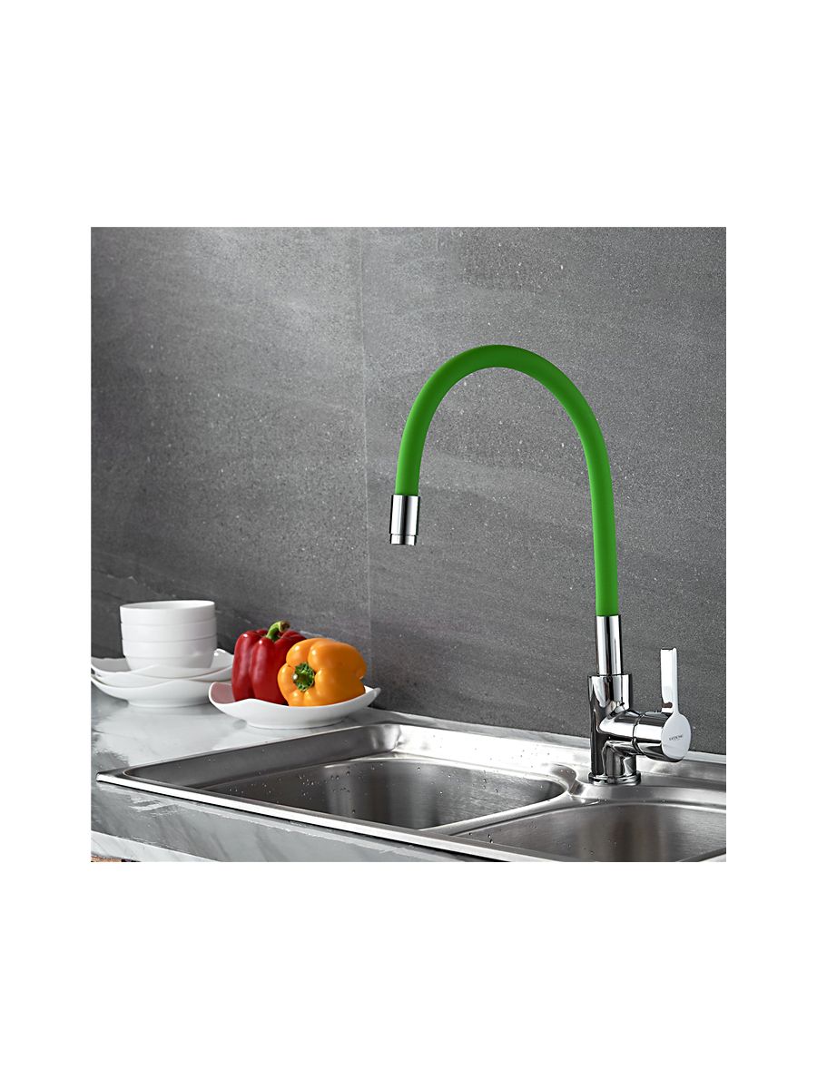 Смеситель кухня LEDEME гибкий шланг зелёный L4898-5 в коллекции смесителей из серии силиконовых смесителей с цветным покрытием успешно сочетаются с современным дизайном с применением необычных форм деталей. Такой контраст делает модель оптимальной для интерьеров в современном стиле, сочетающих функционализм и комфорт для пользователей. Конструкция моделей основана на использовании керамического смешивающего картриджа, имеющего повышенный ресурс и пропускную способность, изготовлен из прочной, долговечной высокркачественой латуни, Гибкий излив с аэратором максимально увеличивает удобство использования и насыщенность воды кислородом, аэрация струи происходит за счет увеличения площади потока. Удобная эргономичная ручка смесителей имеют форму, удобную для захвата ладонью и значительные размеры, что позволяет уменьшить усилия, необходимые для изменения температуры и напора воды.