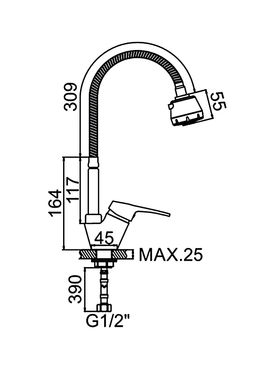 Смеситель для кухни LEDEME L4313 из серии смесителей H13 изготовлен из латуни с хромированным покрытием, устанавливется на кухонную мойку со стандартным отверстием под смеситель или на столешницу с помощью гайки. Смеситель с гибким поворотным изливом, подача воды осуществляется с помощью ручки и керамического картриджа диаметром 35 мм, поток воды может выдаваться в двух режимах.