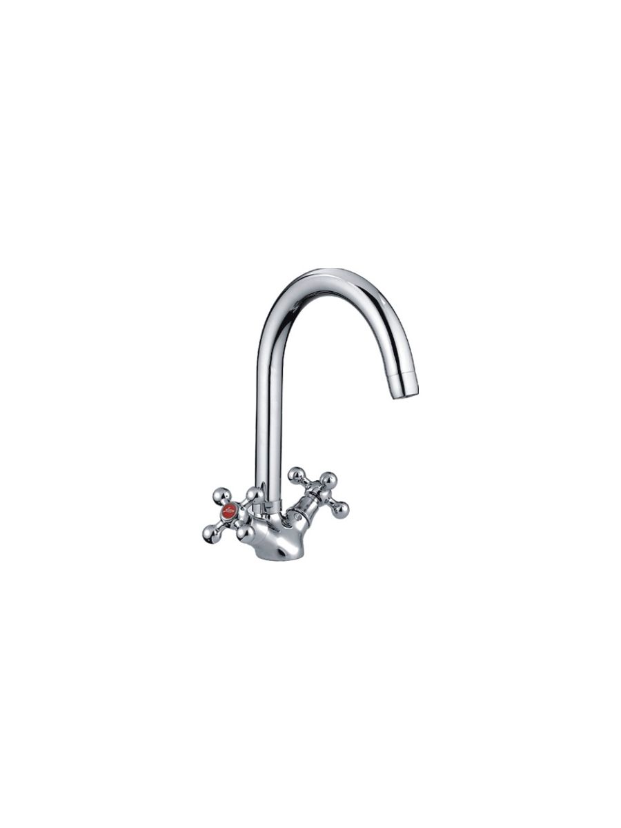 Смесители под торговой маркой LEDEME изготовлены из высококачественной латуни с хромированным покрытием и соответствуют общеевропейским и международным стандартам качества. В ассортименте представлены смесители различного направления дизайна и назначения, с двумя маховиками или однорычажные, хромированные, матовые, гранитные, тропический душ и другие.Смеситель LEDEME L4319 из серии H19 предназначен для использования на кухне. Смешивание горячей и холодной воды происходит с помощью двух металлических крестообразных маховиков и керамических кран-букс. Смеситель с поворотным изливом высотой 250 мм, крепление на кухонной мойке с помощью шпилек. В комплекте прилагается подводка к смесителю. Гарантия на комплектующие 1 год.