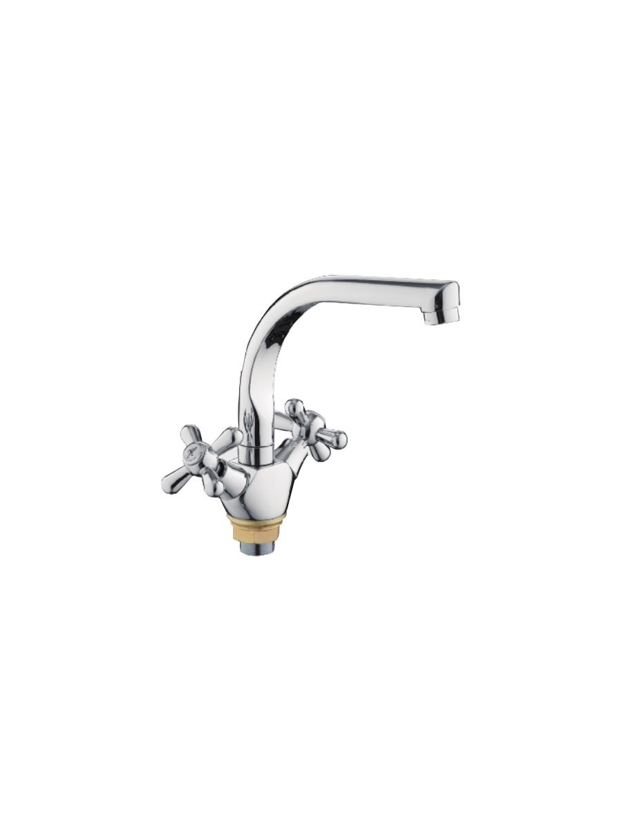Смесители под торговой маркой LEDEME изготовлены из высококачественной латуни с хромированным покрытием и соответствуют общеевропейским и международным стандартам качества. В ассортименте представлены смесители различного направления дизайна и назначения, с двумя маховиками или однорычажные, хромированные, матовые, гранитные, тропический душ и другие.Смеситель LEDEME L5818-2 из серии H18 предназначен для использования на кухне. Смешивание горячей и холодной воды происходит с помощью двух металлических крестообразных маховиков и керамических кран-букс. Смеситель с поворотным изливом высотой 200 мм, крепление на кухонной мойке с помощью обжимной гайки. В комплекте подводка к смесителю. Гарантия на комплектующие 1 год.