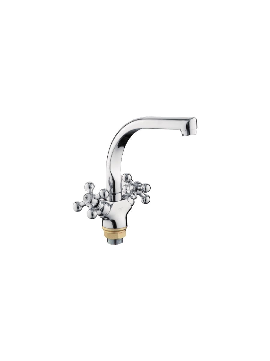 Смеситель кухня LEDEME с гайкой, L5819-2 смеситель Ledeme L5819-2 обладает двумя удобными маховиками, керамическими кранбуксами и встроенным аэратором, смягчающим поток воды. Корпус изготовлен из высококачественной латуни с белым хромированным покрытием, и отличается высокой устойчивостью к коррозии. Cмесители эконом-класса Ledeme - продукция высокого качества по доступной цене, с успехом впишется в любой интерьер и прослужат долгое время без поломок, протеканий или других проблем.