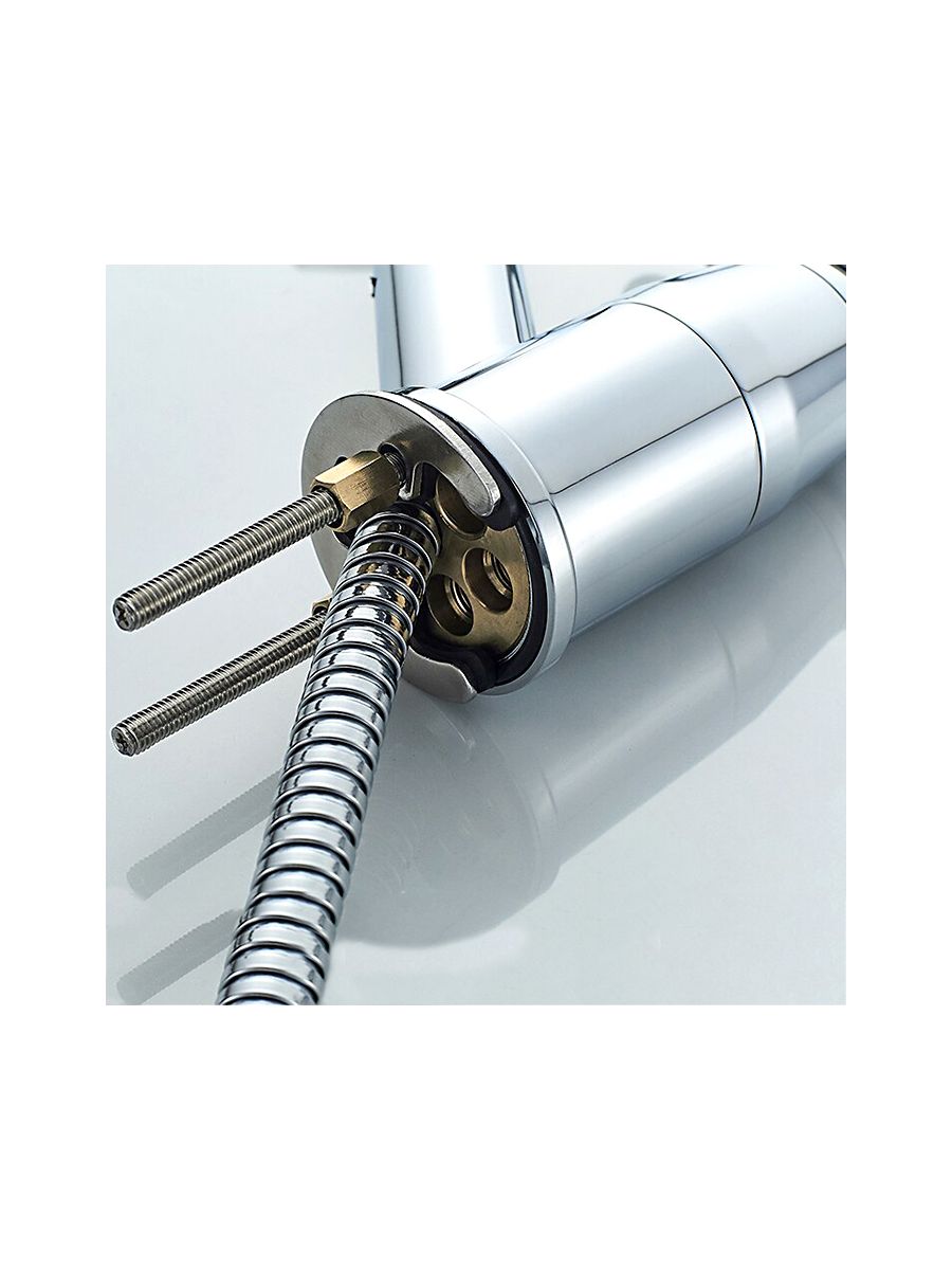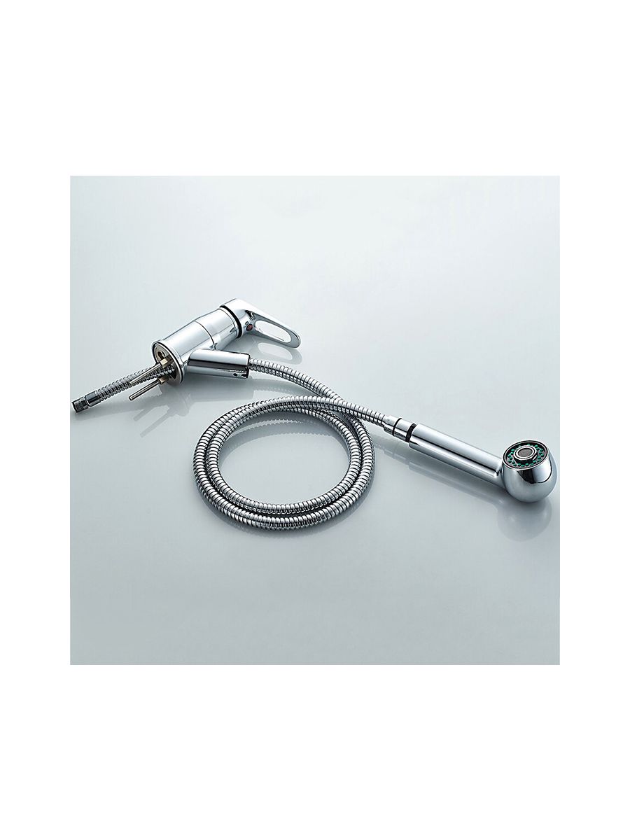 Смесители под торговой маркой LEDEME изготовлены из высококачественной латуни с хромированным покрытием и соответствуют общеевропейским и международным стандартам качества. В ассортименте представлены смесители различного направления дизайна и назначения, с двумя маховиками или однорычажные, хромированные, матовые, гранитные, тропический душ и другие.Смеситель LEDEME L6013 из серии H13 предназначен для использования на кухне. Смешивание горячей и холодной воды происходит с помощью керамического картриджа диаметром 35 мм. Смеситель однорычажный, с поворотным изливом, представляющим собой выдвижную двухрежимную лейку. Лейка со шлангом и ее можно вытягивать из корпуса смесителя на расстояние до 1,5 метра, что создает определенные преимущества при использовании смесителя на кухне. Крепление на кухонной мойке с помощью шпилек, в комплекте прилагается подводка и шланг. Гарантия на комплектующие 1 год.