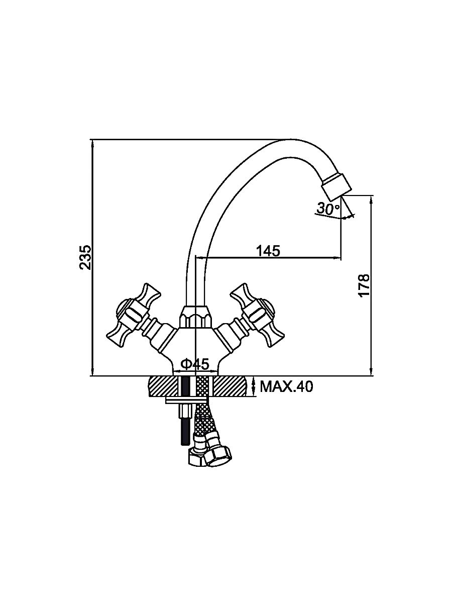 Смеситель кухня LEDEME крест, керамика, цинк, L4111 cмесители под торговой маркой LEDEME изготовлены из высококачественной латуни с хромированным покрытием и соответствуют общеевропейским и международным стандартам качества. В ассортименте представлены смесители различного направления дизайна и назначения, с двумя маховиками или однорычажные, хромированные, матовые, гранитные, тропический душ и другие.Смеситель LEDEME L4111 из серии H11 предназначен для использования на кухне. Смешивание горячей и холодной воды происходит с помощью двух металлических крестообразных маховиков и керамических кран-букс. Смеситель с поворотным изливом высотой 250 мм, крепление на кухонной мойке с помощью шпилек. В комплекте прилагается подводка к смесителю. Гарантия на комплектующие 1 год.