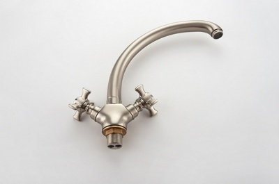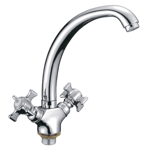 Смеситель кухня LEDEME литой излив ,с гайкой , керамика, цинк, L5911 cмесители под торговой маркой LEDEME изготовлены из высококачественной латуни с хромированным покрытием и соответствуют общеевропейским и международным стандартам качества. В ассортименте представлены смесители различного направления дизайна и назначения, с двумя маховиками или однорычажные, хромированные, матовые, гранитные, тропический душ и другие.Смеситель LEDEME L5911 из серии H11 предназначен для использования на кухне. Смешивание горячей и холодной воды происходит с помощью двух металлических крестообразных маховиков и керамических кран-букс. Смеситель с поворотным изливом высотой 200 мм, крепление на кухонной мойке с помощью шпилек. В комплекте прилагается подводка к смесителю. Гарантия на комплектующие 1 год.