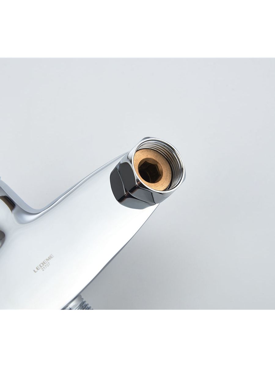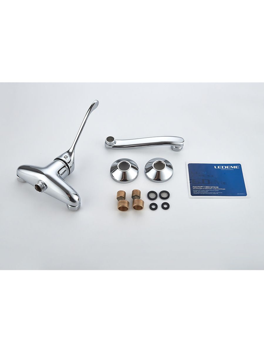 Смесители под торговой маркой LEDEME изготовлены из высококачественной латуни с хромированным покрытием и соответствуют общеевропейским и международным стандартам качества. В ассортименте представлены смесители различного направления дизайна и назначения, с двумя маховиками или однорычажные, хромированные, матовые, гранитные, тропический душ и другие.Смеситель LEDEME L4679 из серии H79 предназначен для использования, как правило, в медицинских учреждениях. Такие смесители еще называют хирургическими. Смешивание горячей и холодной воды происходит с помощью керамического картриджа диаметром 40 мм. Смеситель однорычажный, с удлиненным рычагом и утолщением на его конце, для удобного открывания/закрывания с помощью локтя, длина плоского S-образного излива 250 мм. Смеситель монтируется на стену, монтажное расстояние 150 мм, в комплекте декоративные отражатели, эксцентрики. Гарантия на комплектующие 1 год.