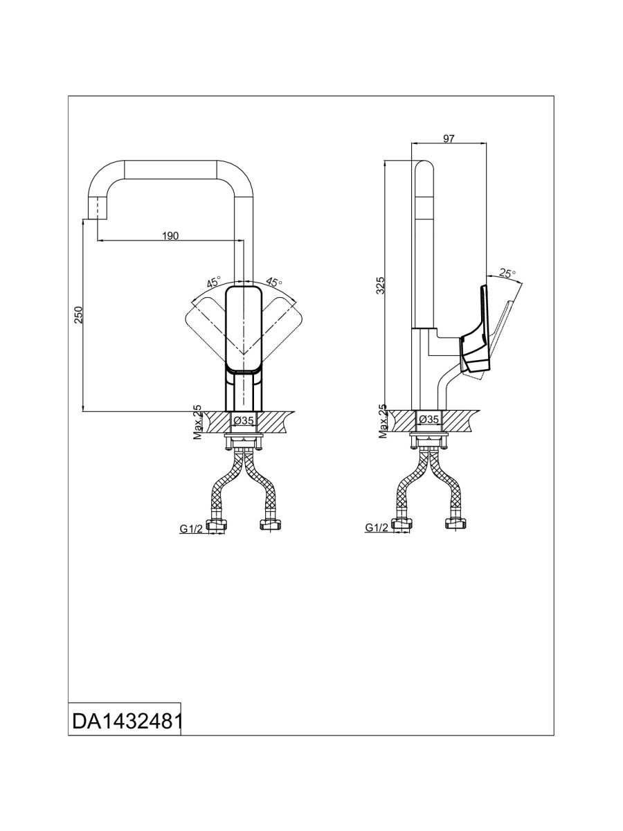 - Гибкая подводка 40 см идёт в комплекте для быстрой установки.