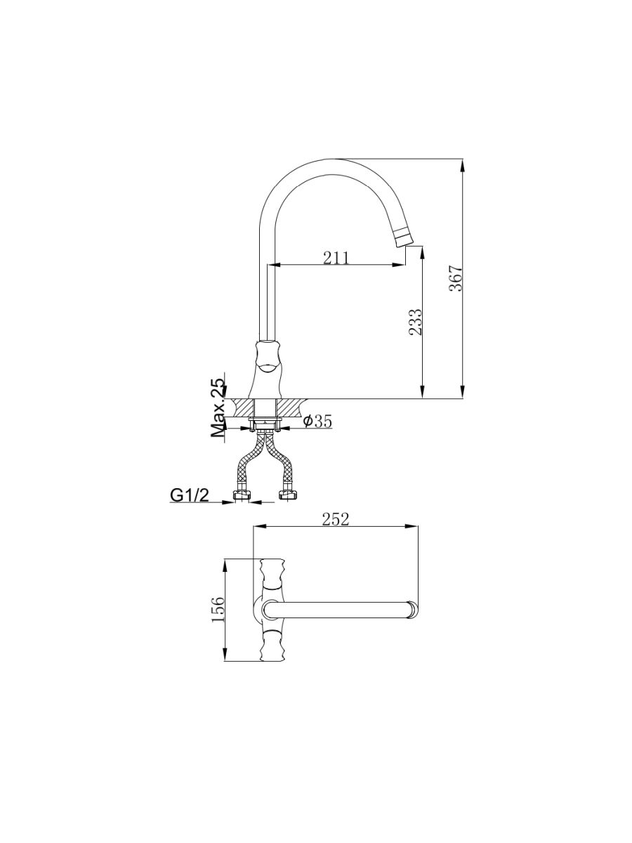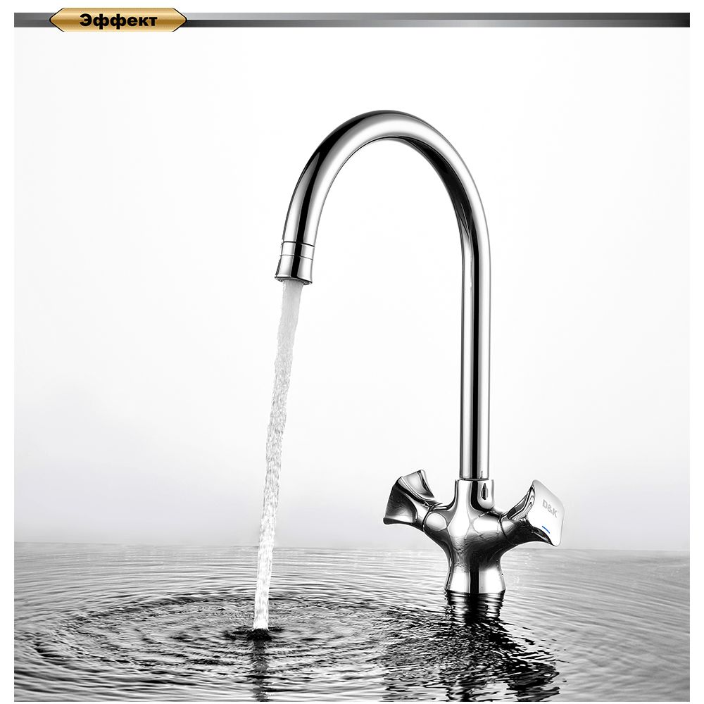 Блестящий внешний вид двухручкового смесителя привлекает своим внешним видом, послужит прекрасным дополнением классической кухни.