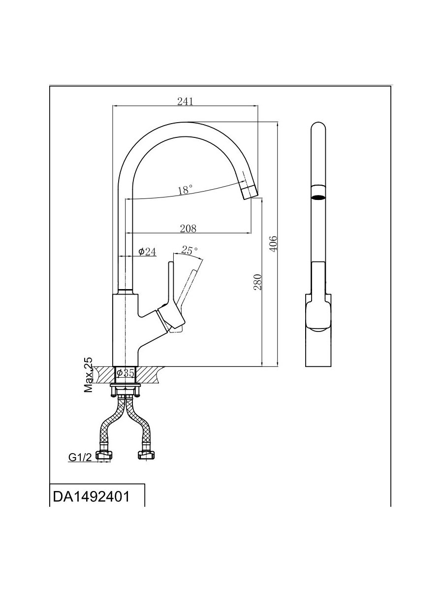 - Гибкая подводка 40 см идёт в комплекте для быстрой установки.