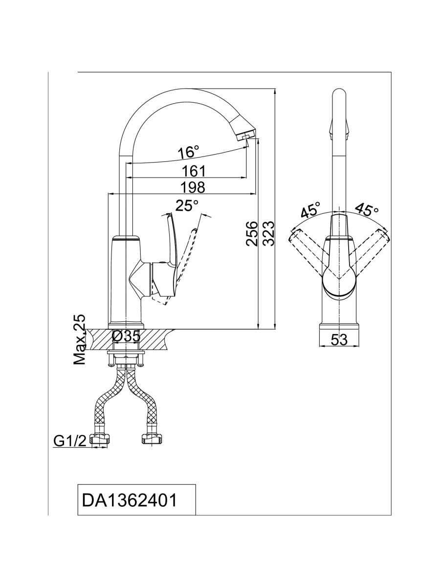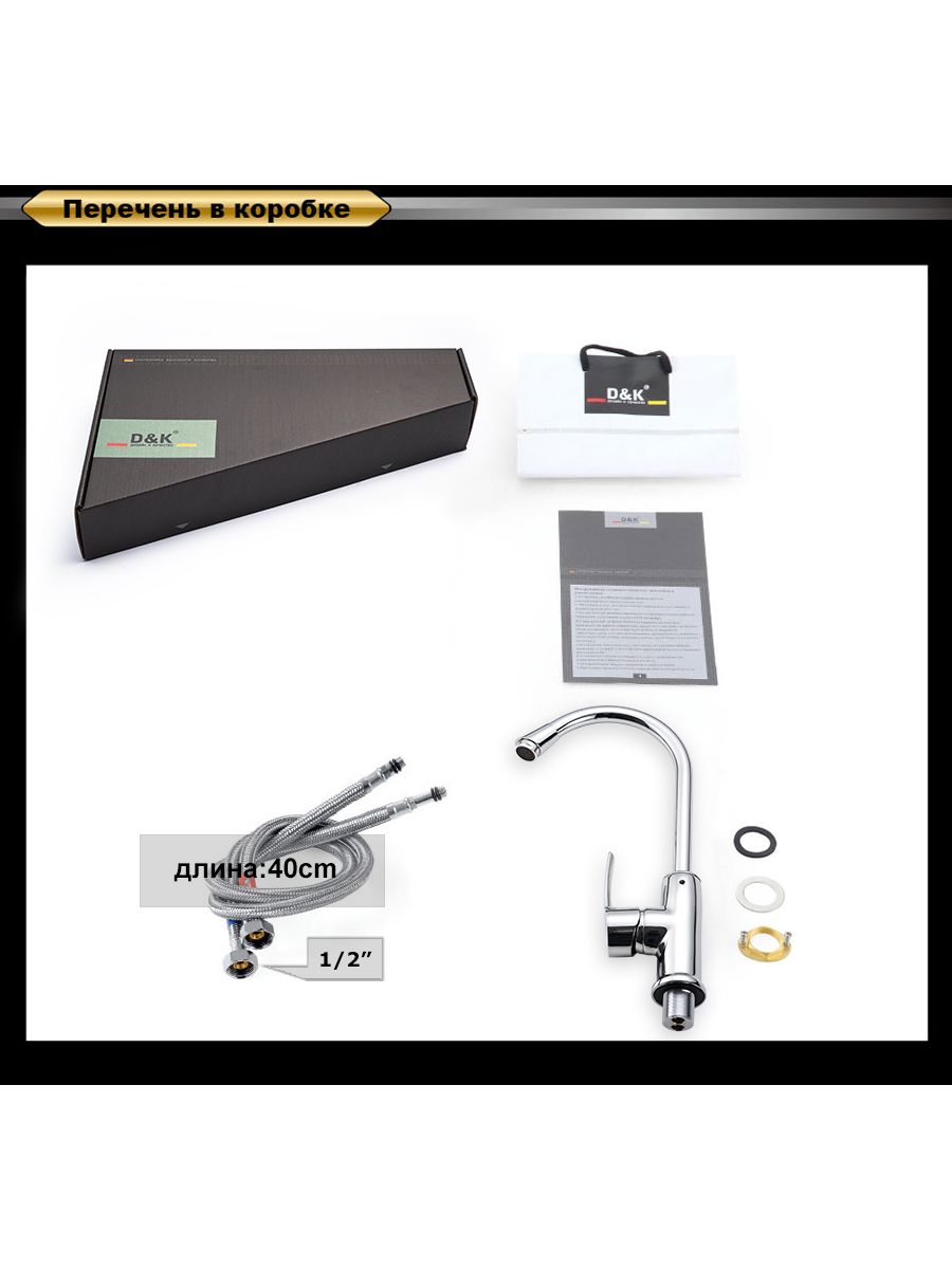 - Гибкая подводка 40 см идёт в комплекте для быстрой установки.