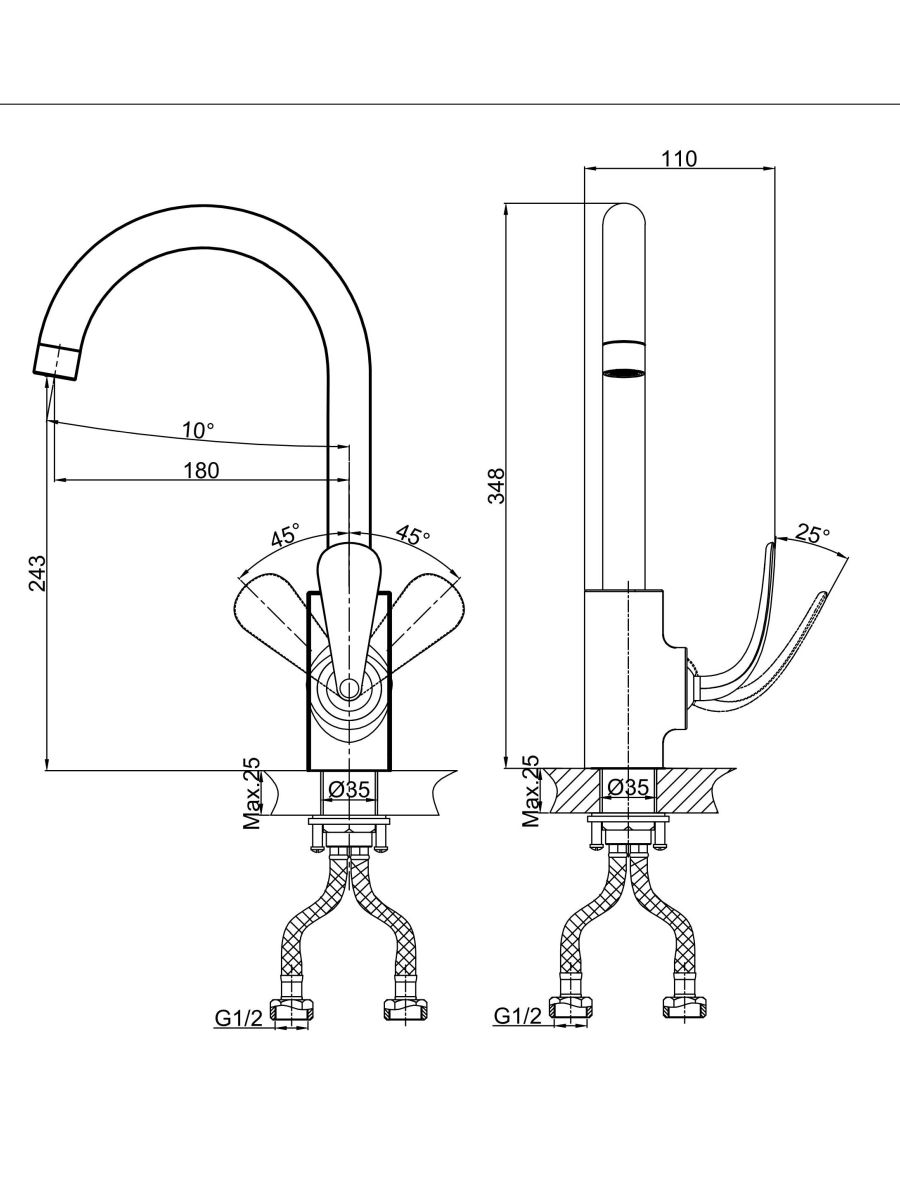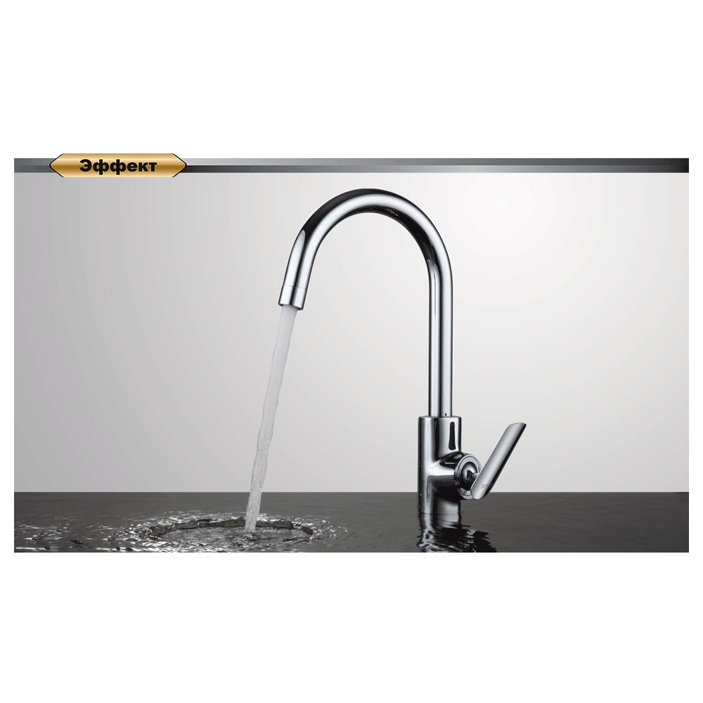 Изящный дизайн данного смесителя с измененной стильной ручкой, украсит современную кухню своим очертанием.