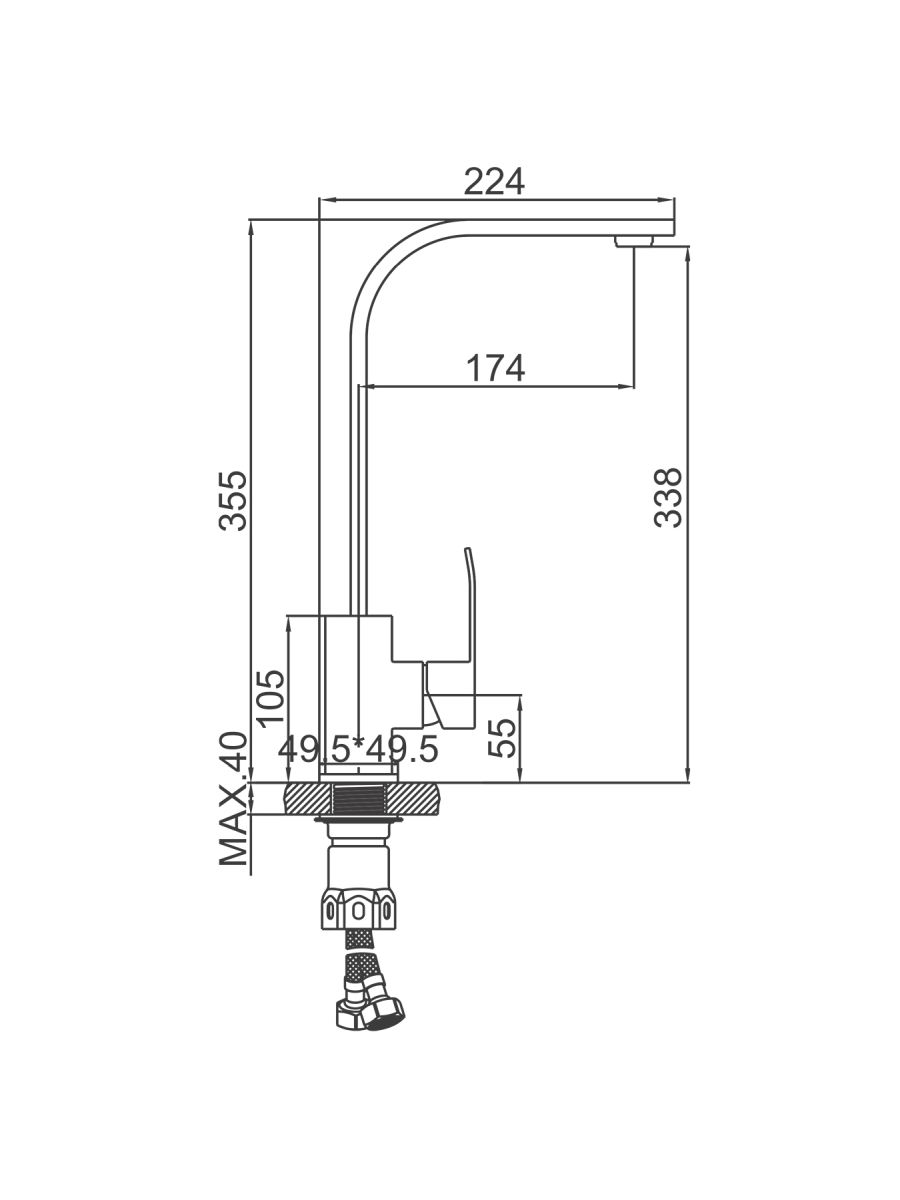 Смеситель кухня LEDEME картридж 35мм c гайкой нержавейка L74017