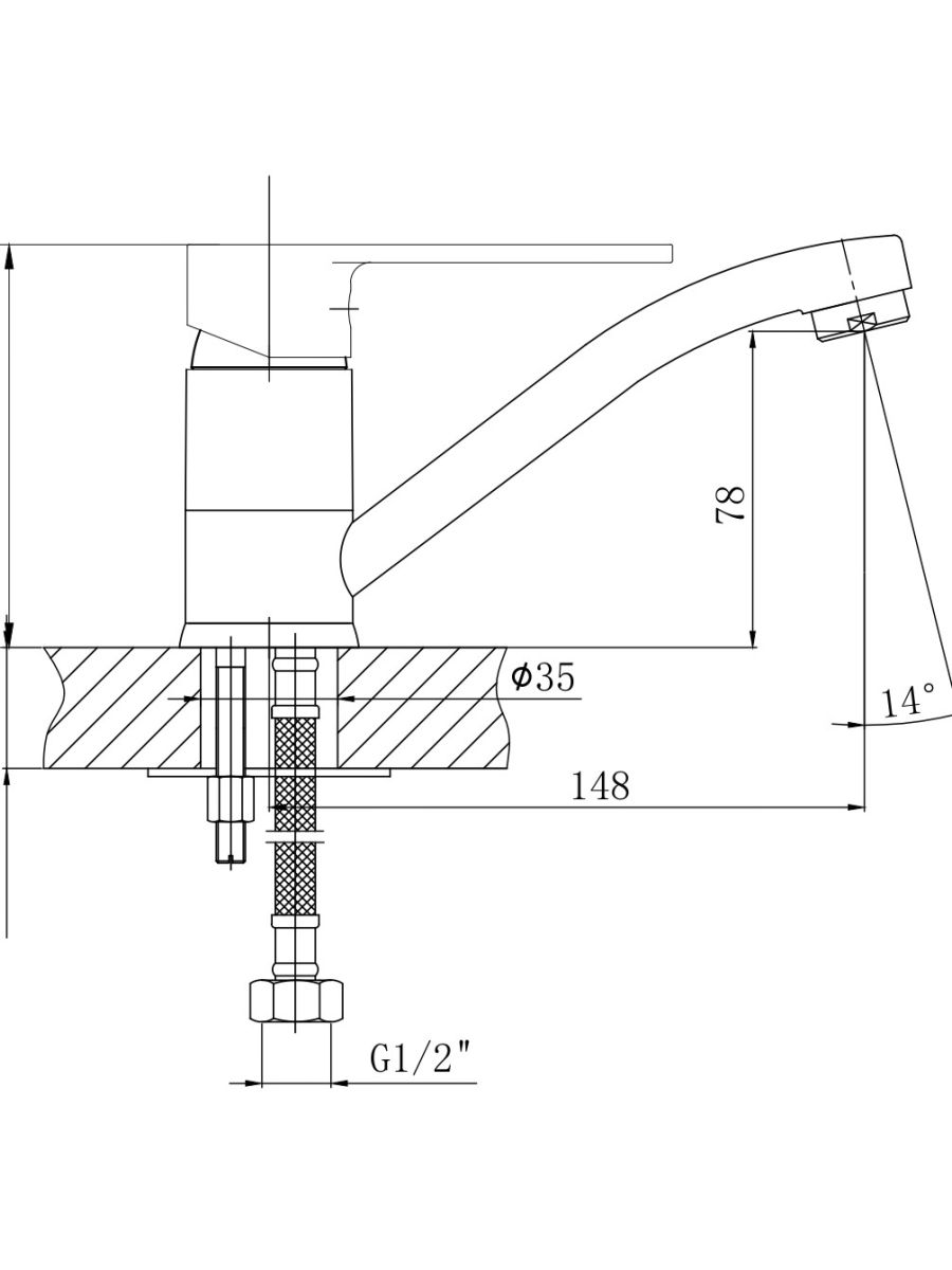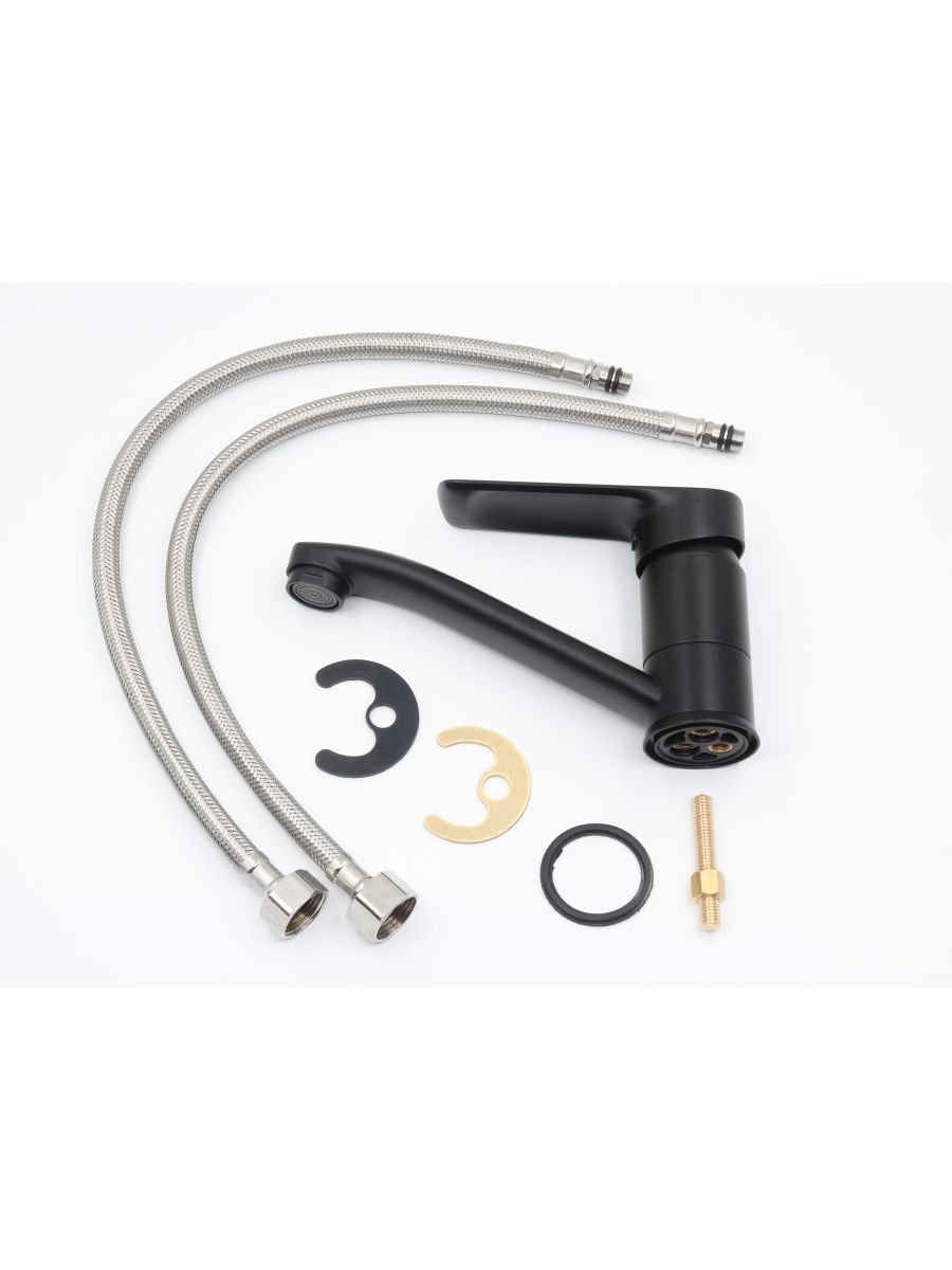 Корпус: PPA Излив: поворотный, 360 градусов Картридж: универсальный ESKO,35мм Комплектация: пьедестал(металл), крепление "шпилька",гибкая подводка 45см.