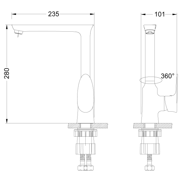 Серия смесителей NERO.Комплектация:АэраторКерамический картридж 35 ммГибкая подводка ½” 50 смПрисоединительная группа для настольного крепленияМеталлическая рукоятка