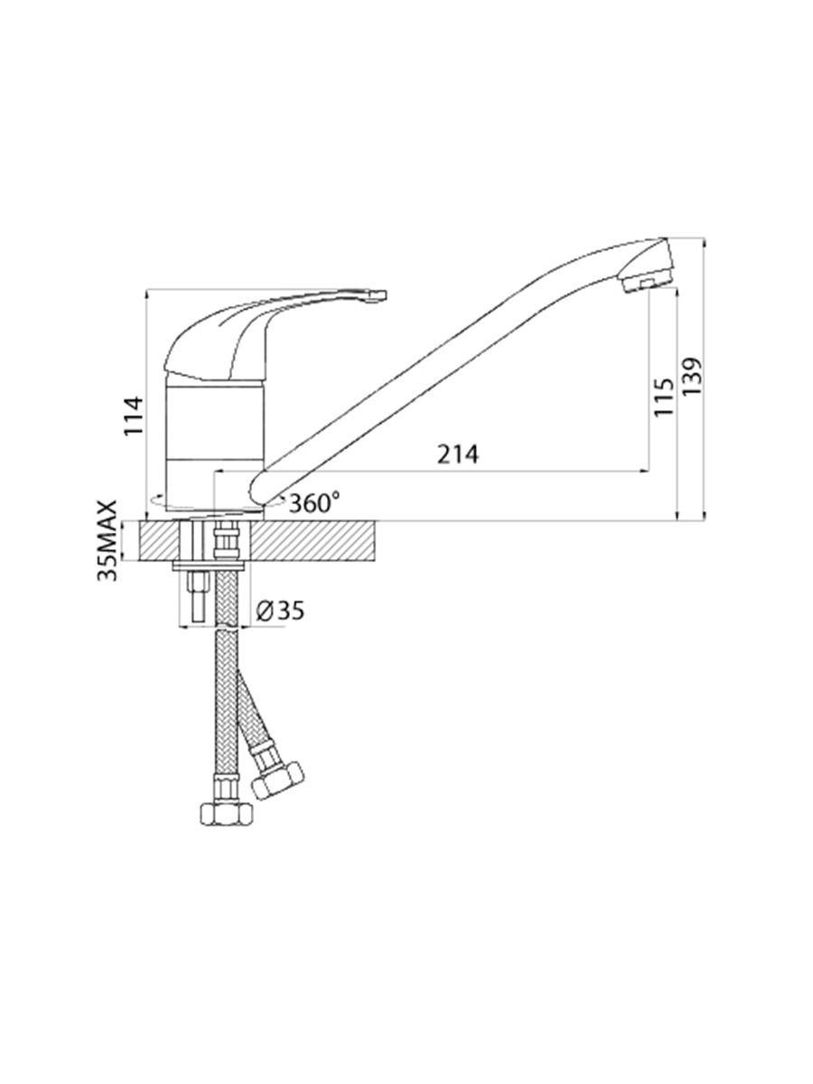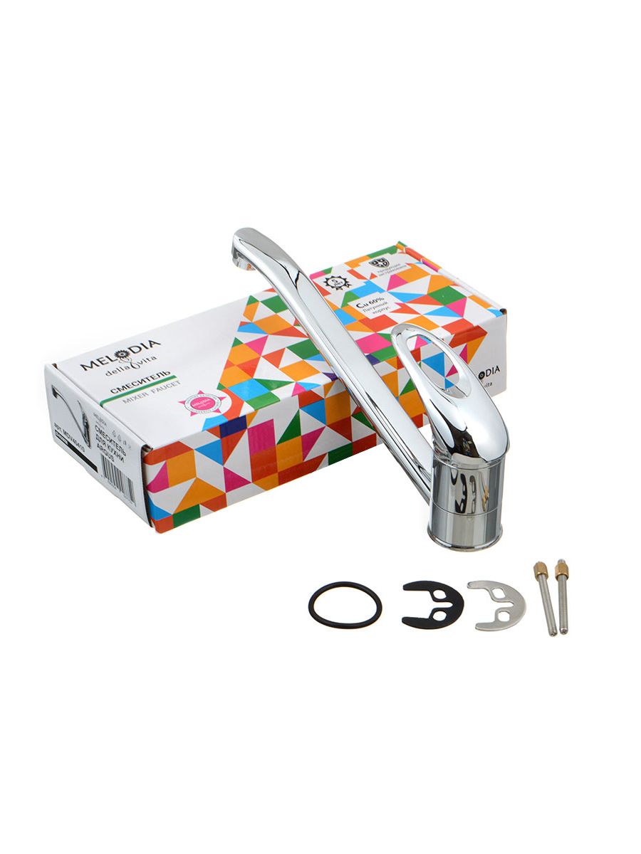 Смеситель для кухни MELODIA Argus MDV40410 изготовлен из хромированной латуни, с поворотным изливом, смешивание воды происходит с помощью керамического картриджа диаметром 40 мм, без гибкой подводки в комплекте.